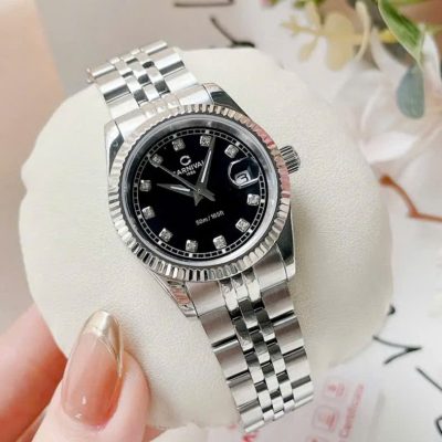 ĐỒNG HỒ Nữ Carnival 8131L-VT-D-Mặt Đen – Dây Thép Bạc – Pin – Kính Sapphire
