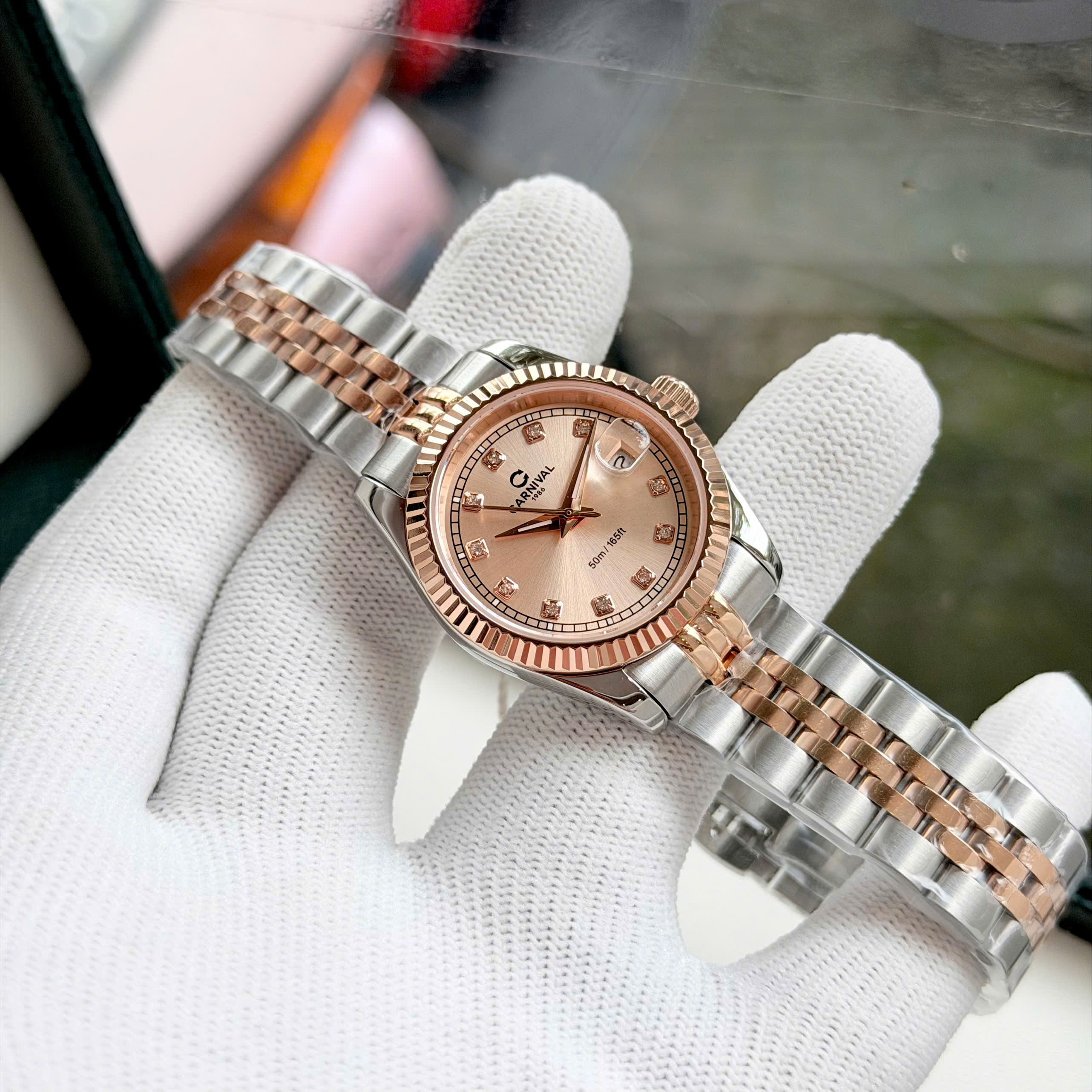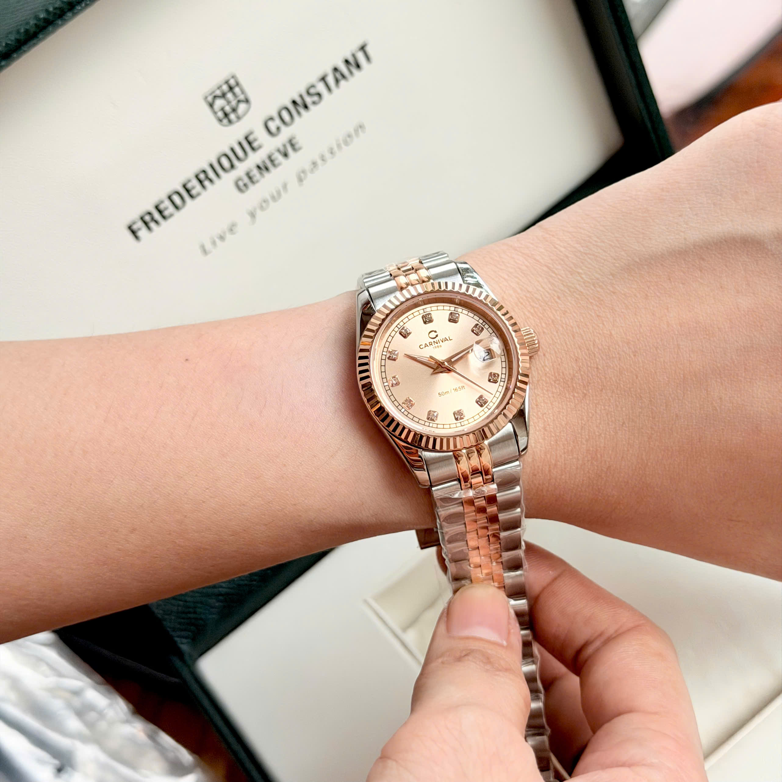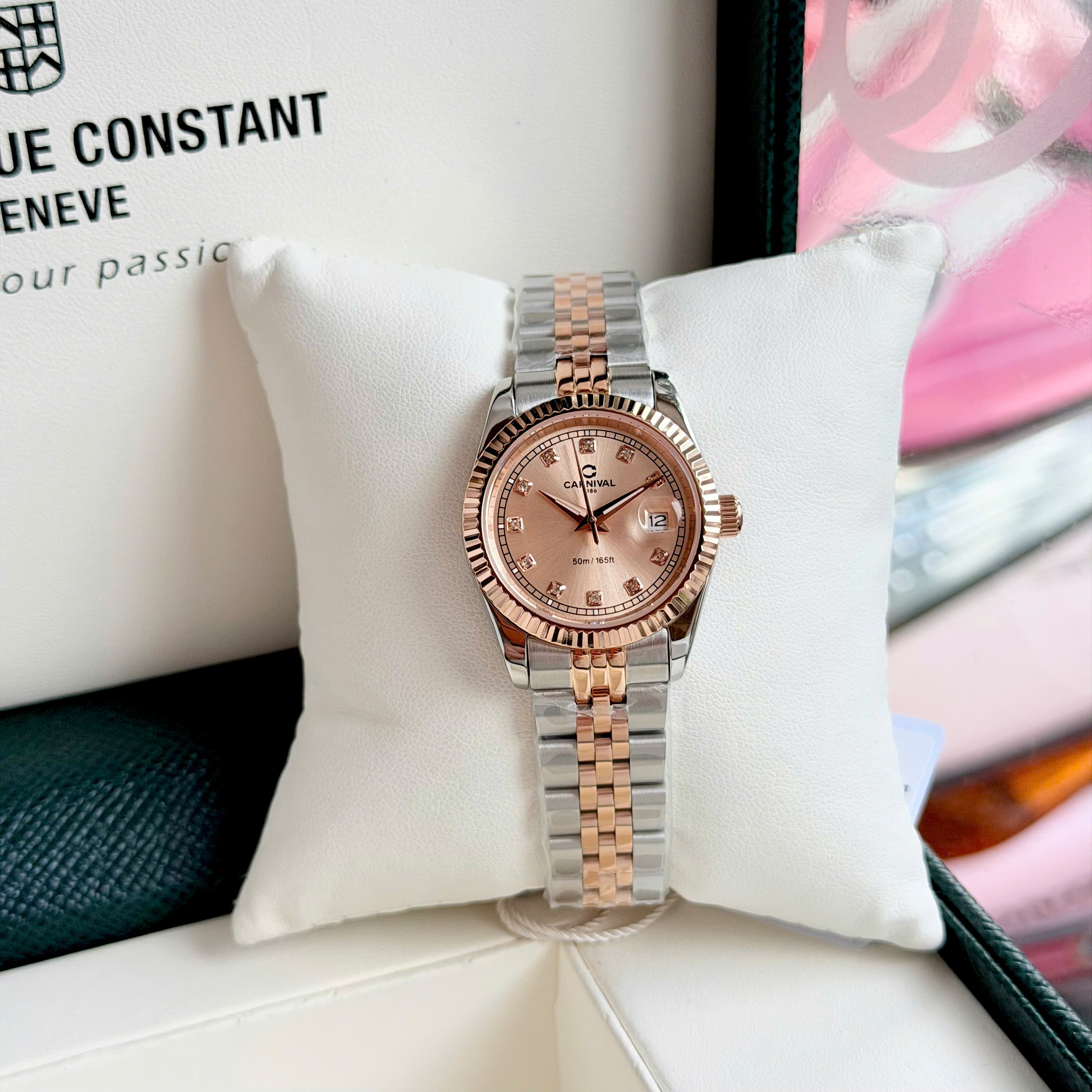 Dây đeo: Carnival  thường đi kèm với dây đeo bằng thép không gỉ hoặc dây da cao cấp. Thiết kế dây đeo có thể là mắt cáo (link) hoặc dạng dây đeo đơn (strap), tạo sự linh hoạt và tương thích với nhiều phong cách khác nhau.