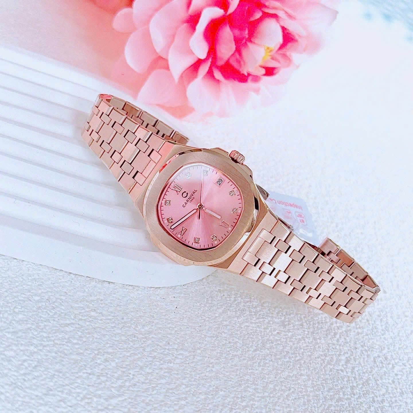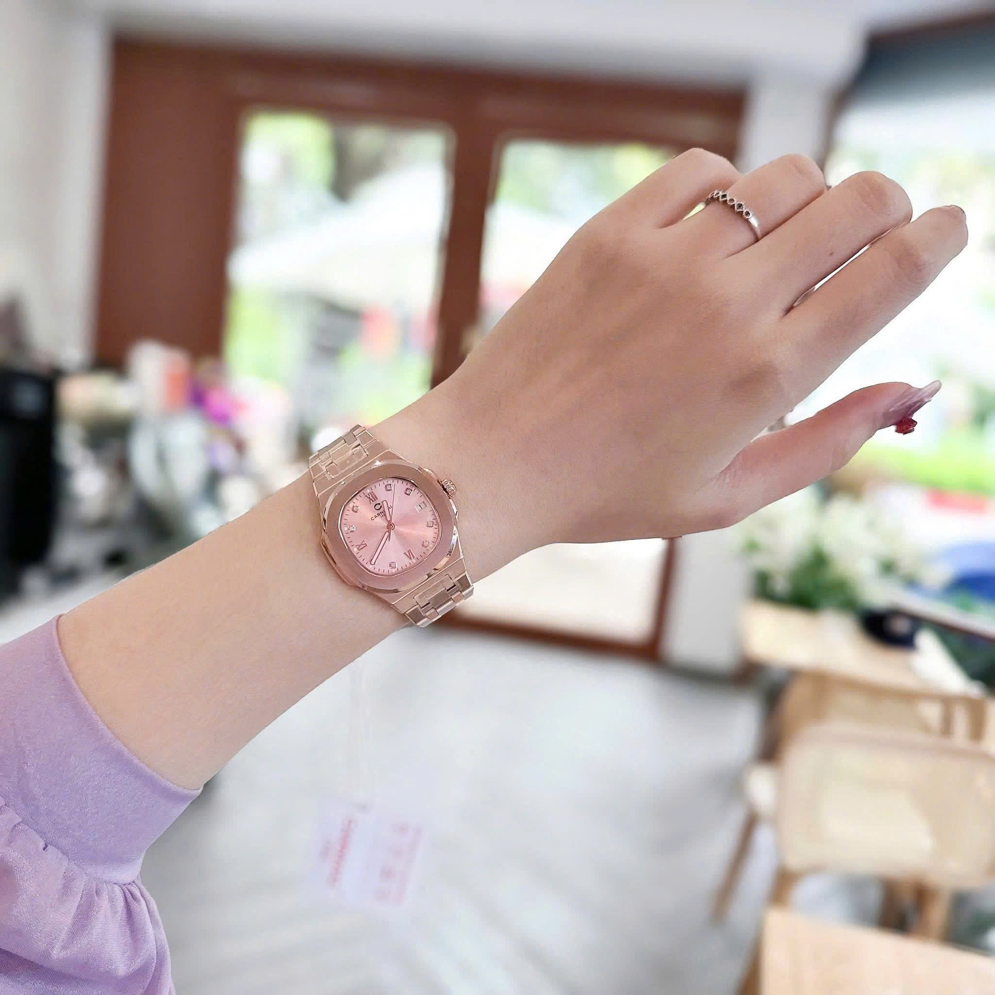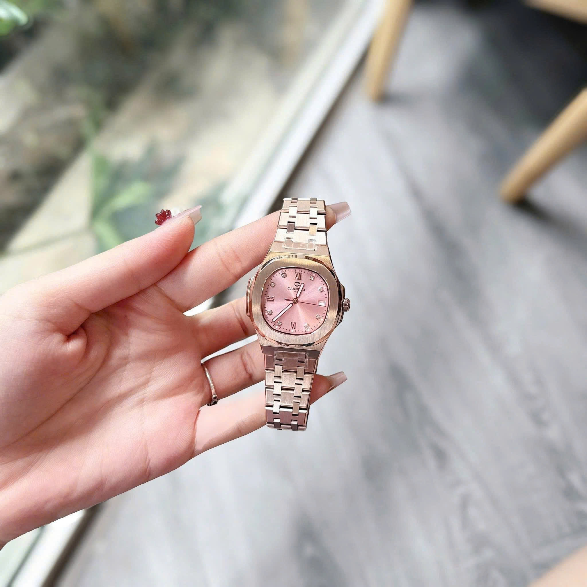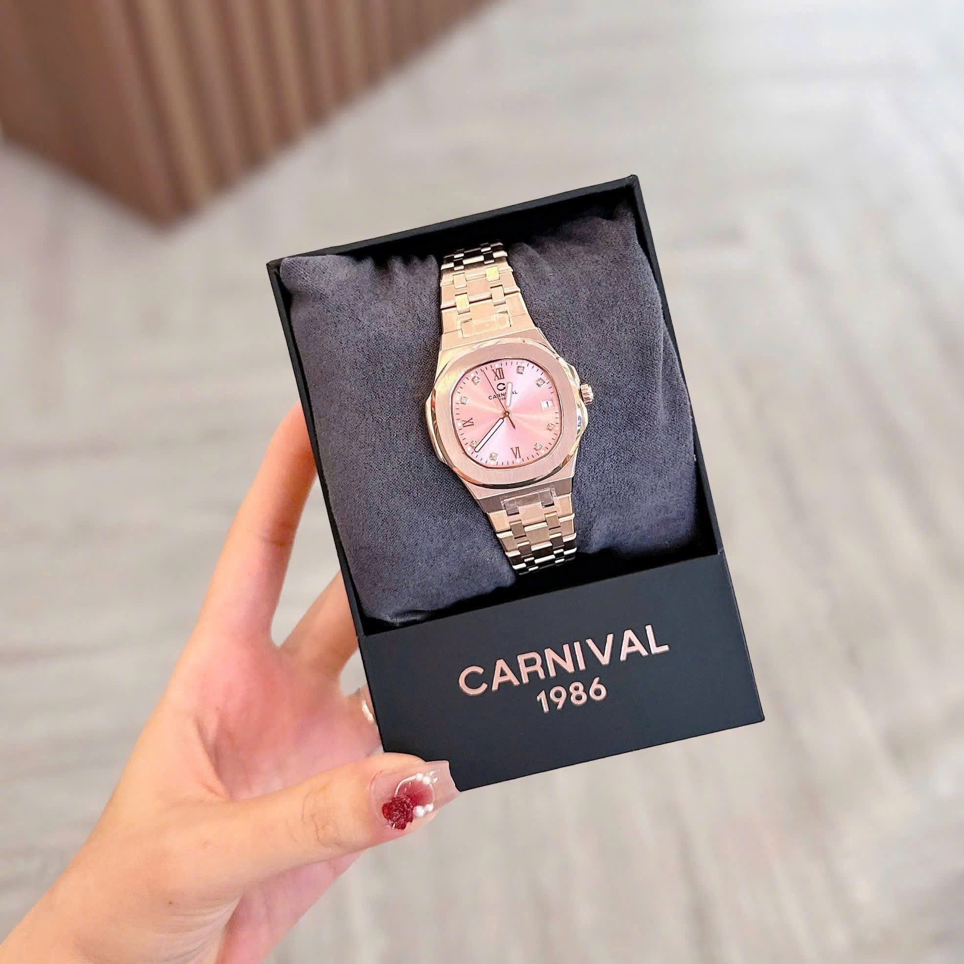 ĐỒNG HỒ Nữ Carnival 8160L-VH-H Mặt Hồng-Dây Thép-Pin-Kính Sapphire
