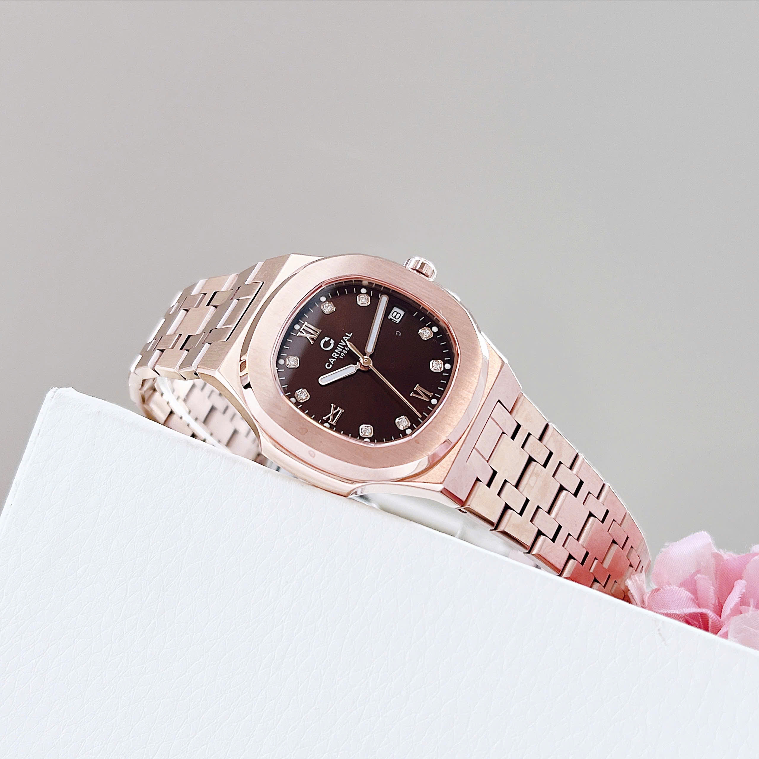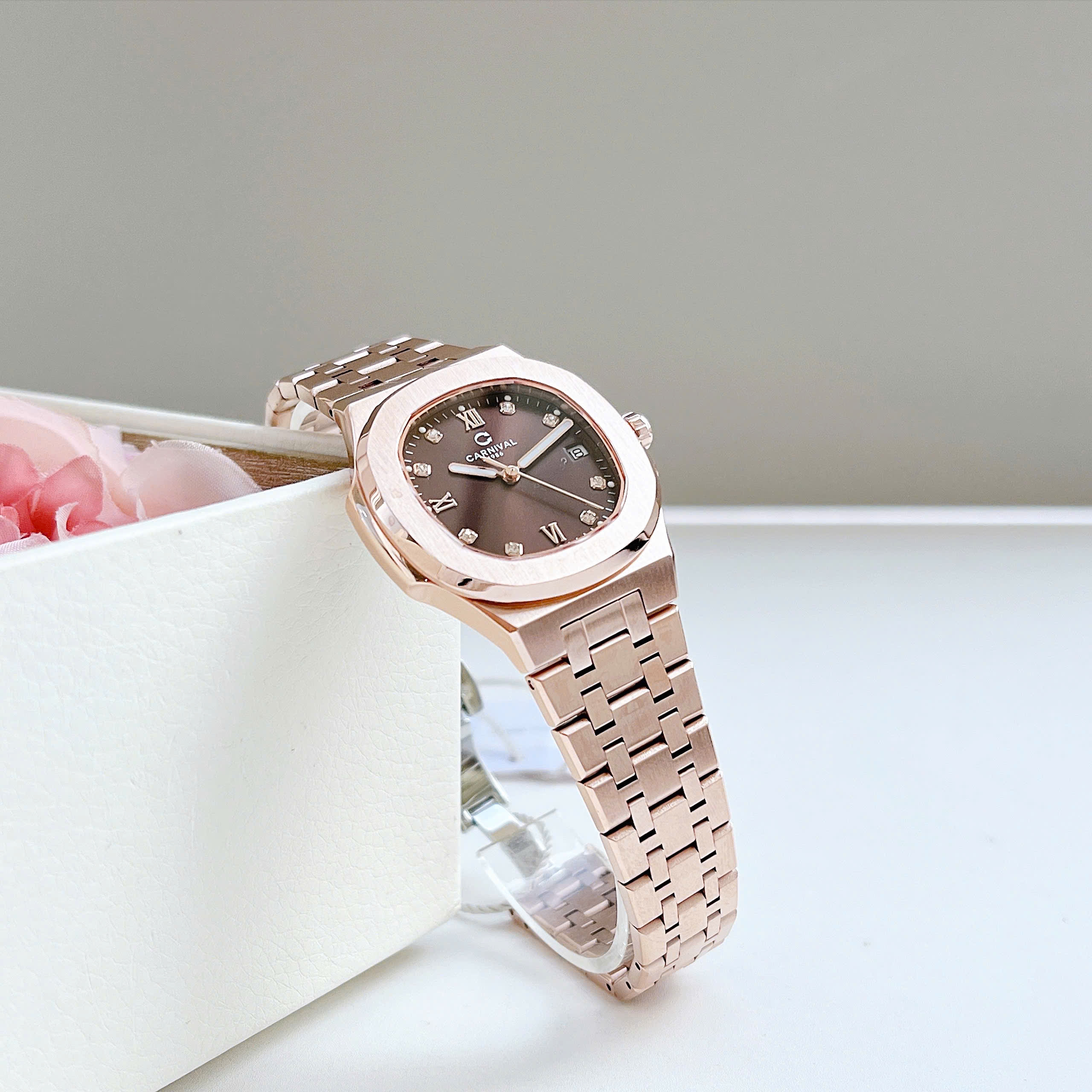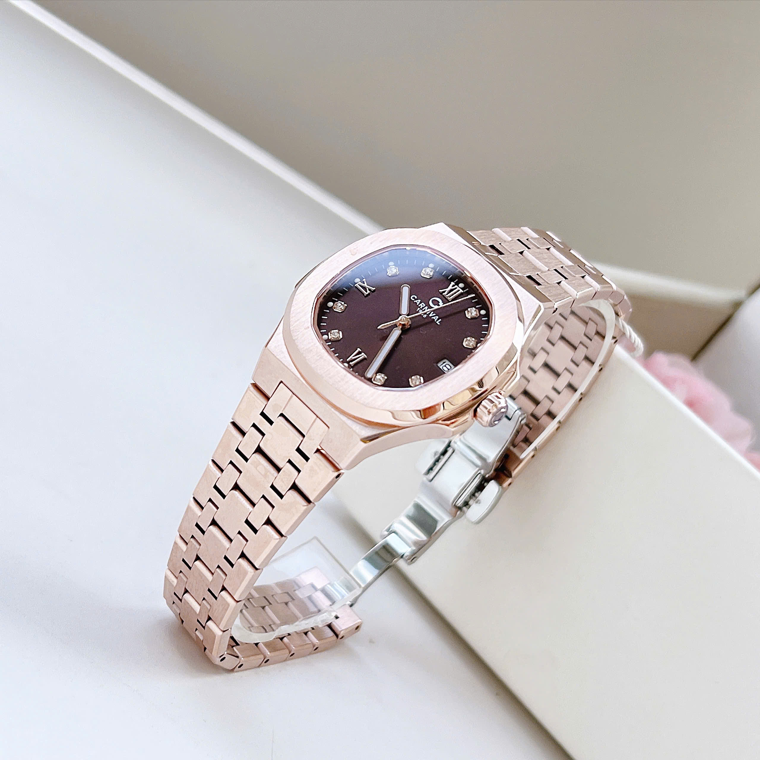 Dây đeo: Carnival thường đi kèm với dây đeo bằng thép không gỉ hoặc dây da cao cấp. Thiết kế dây đeo có thể là mắt cáo (link) hoặc dạng dây đeo đơn (strap), tạo sự linh hoạt và tương thích với nhiều phong cách khác nhau.