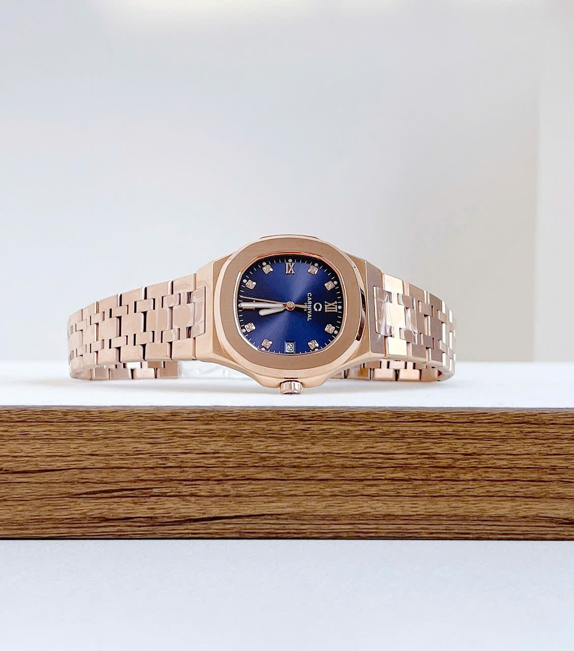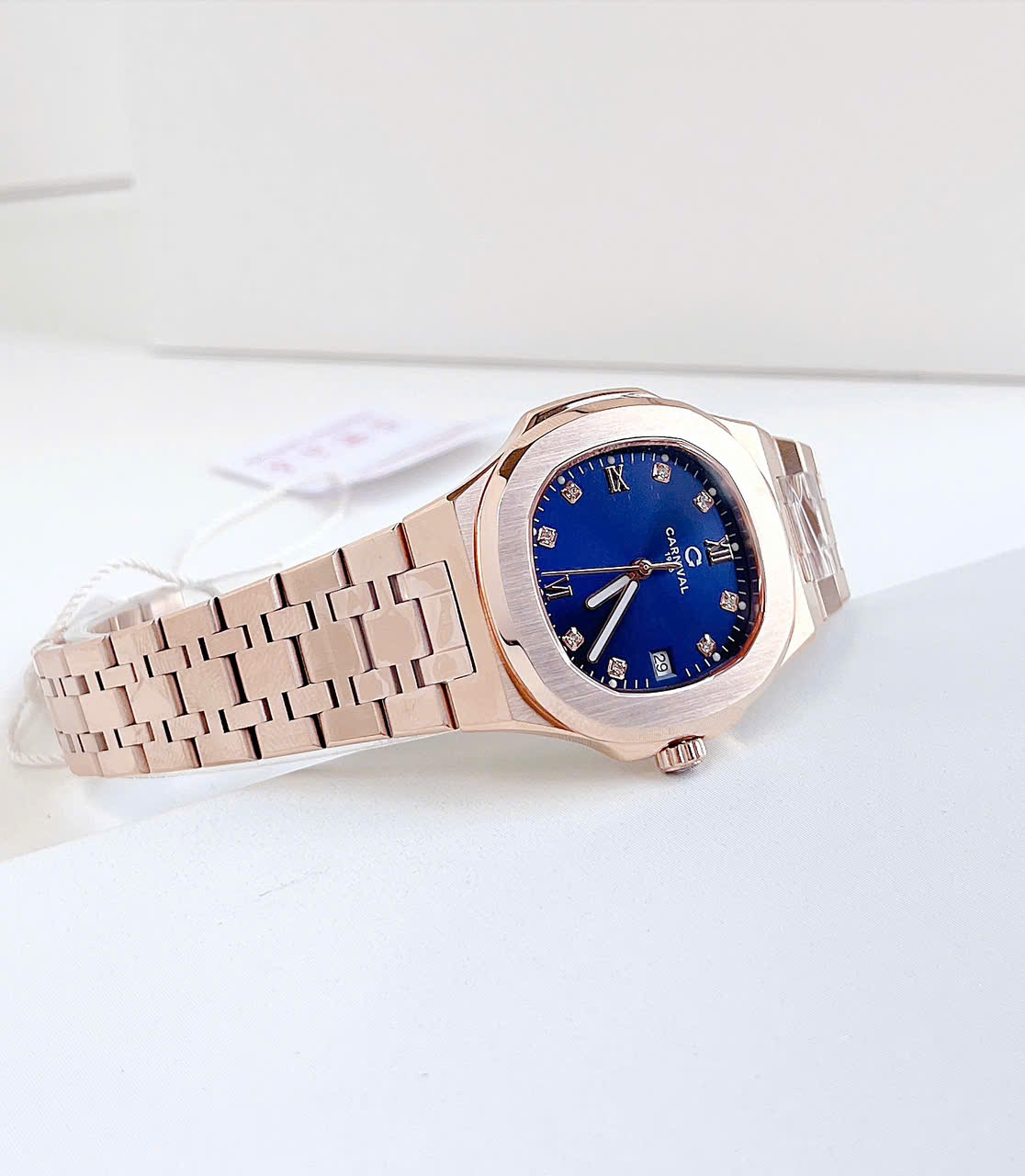 Dây đeo: Carnival  thường đi kèm với dây đeo bằng thép không gỉ hoặc dây da cao cấp. Thiết kế dây đeo có thể là mắt cáo (link) hoặc dạng dây đeo đơn (strap), tạo sự linh hoạt và tương thích với nhiều phong cách khác nhau.