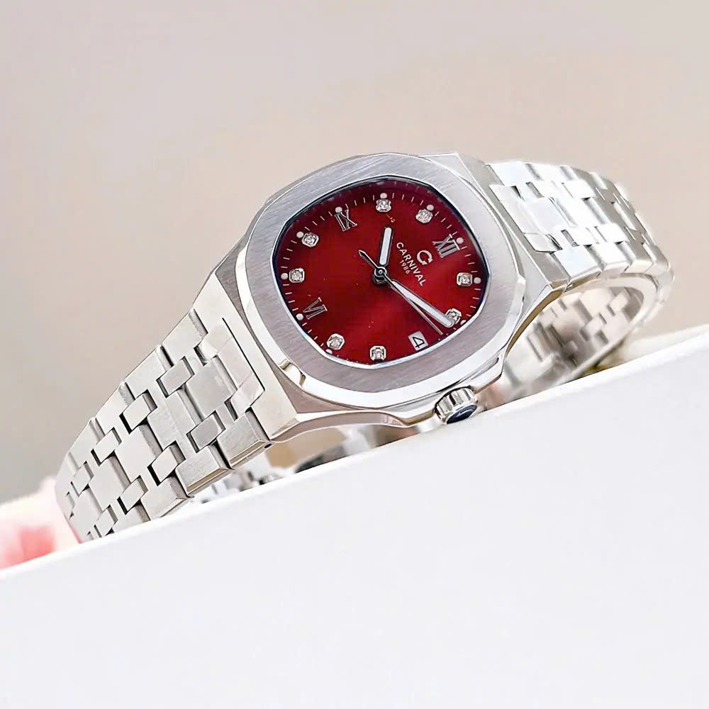 ĐỒNG HỒ Nữ Carnival 8160L-VT-DO Mặt Đỏ-Dây Thép-Pin-Kính Sapphire