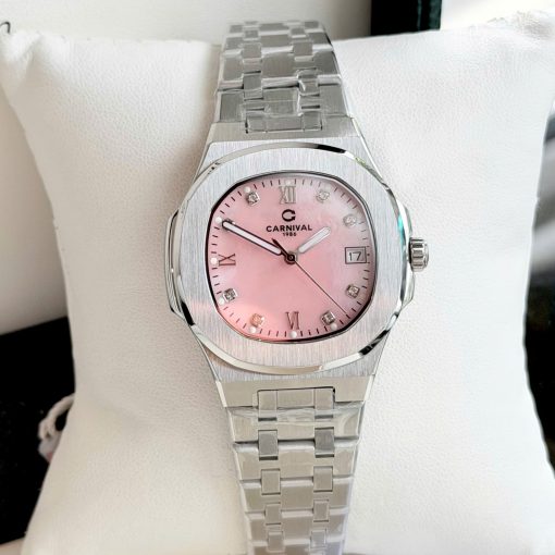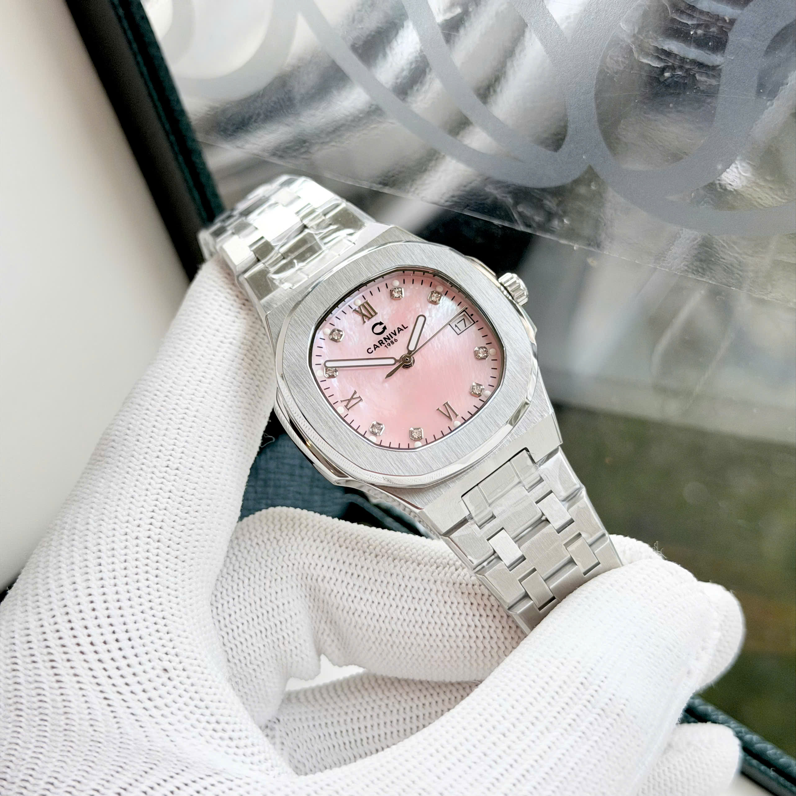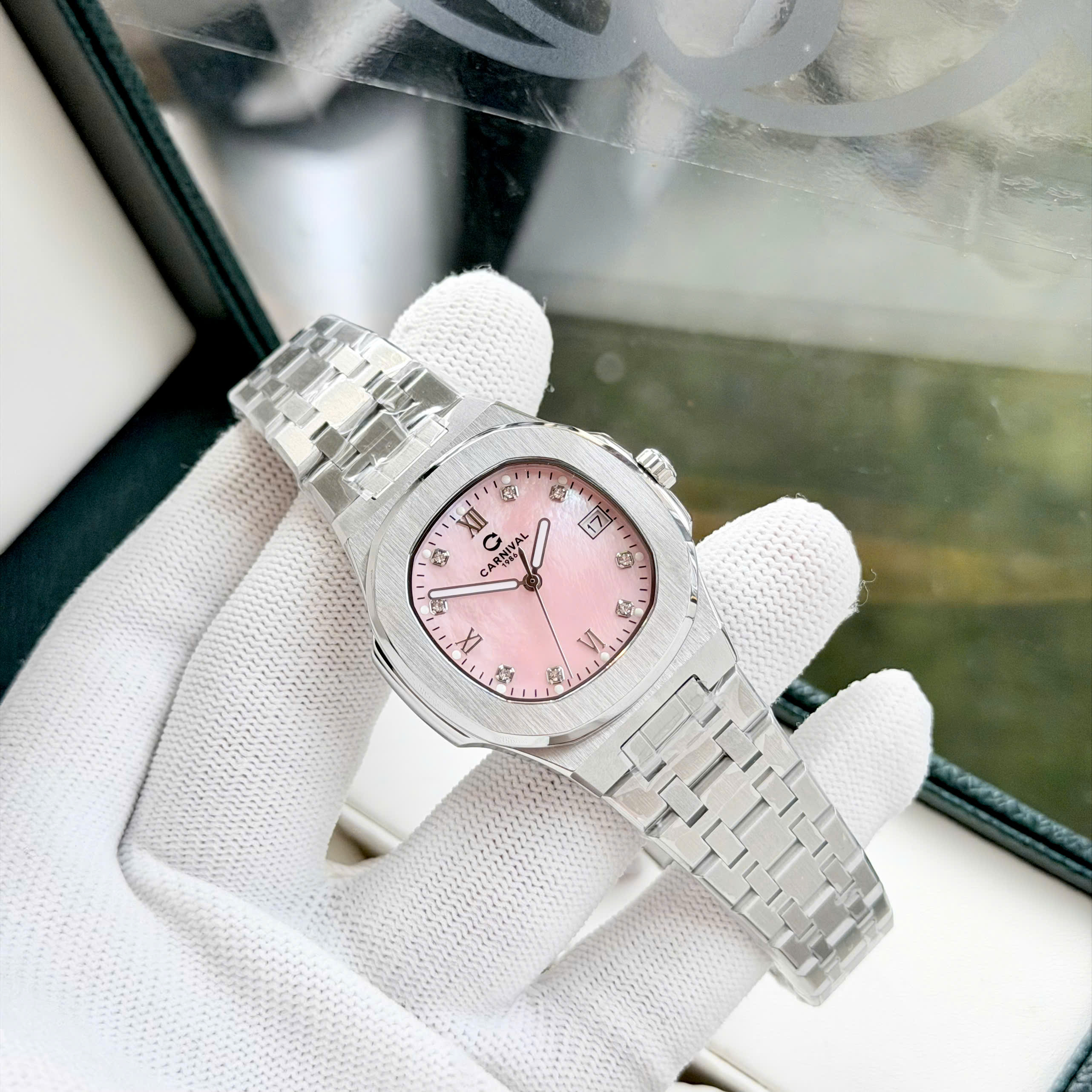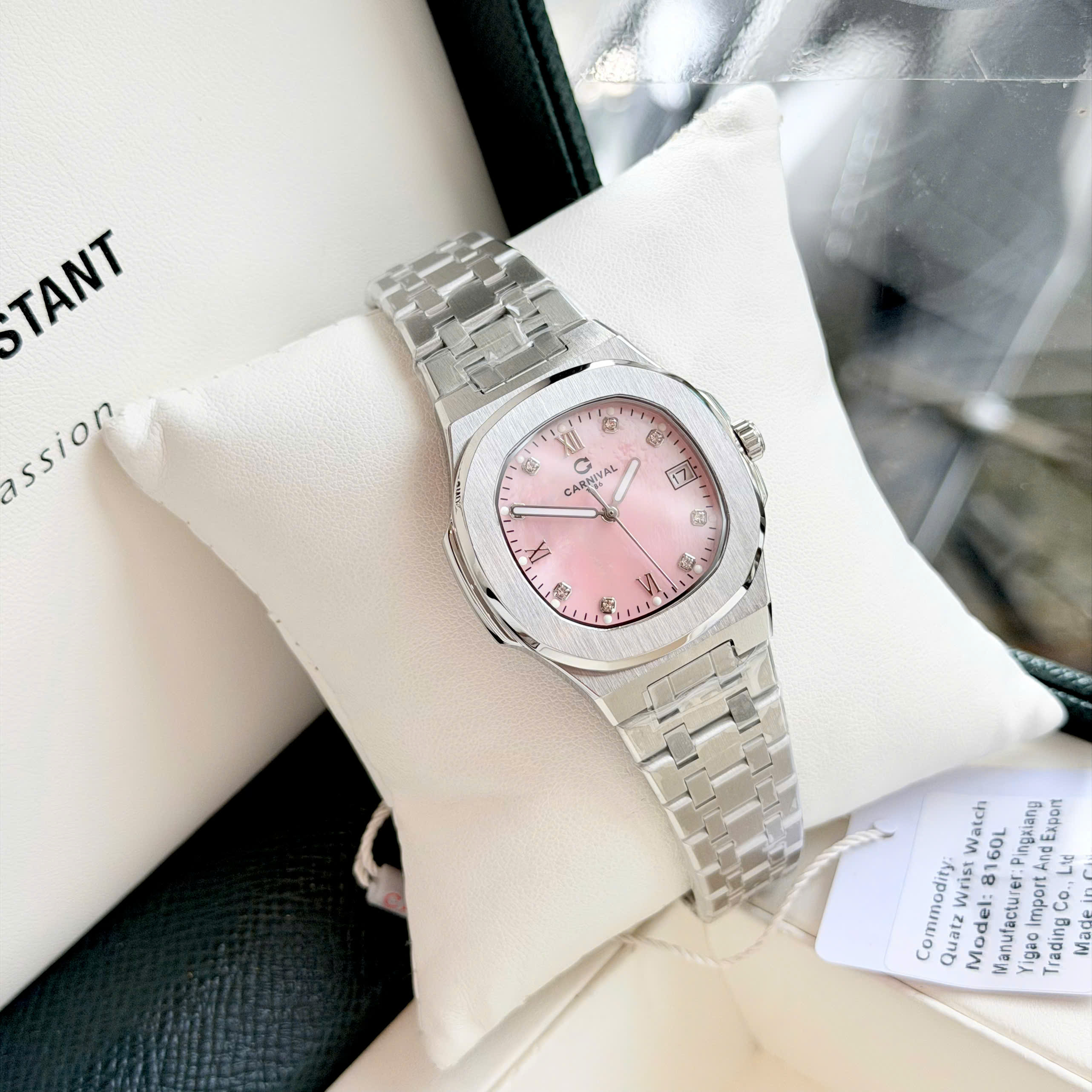ĐỒNG HỒ Nữ Carnival 8160L-VT-HK Mặt Xà Cừ Hồng-Dây Thép-Pin-Kính Sapphire