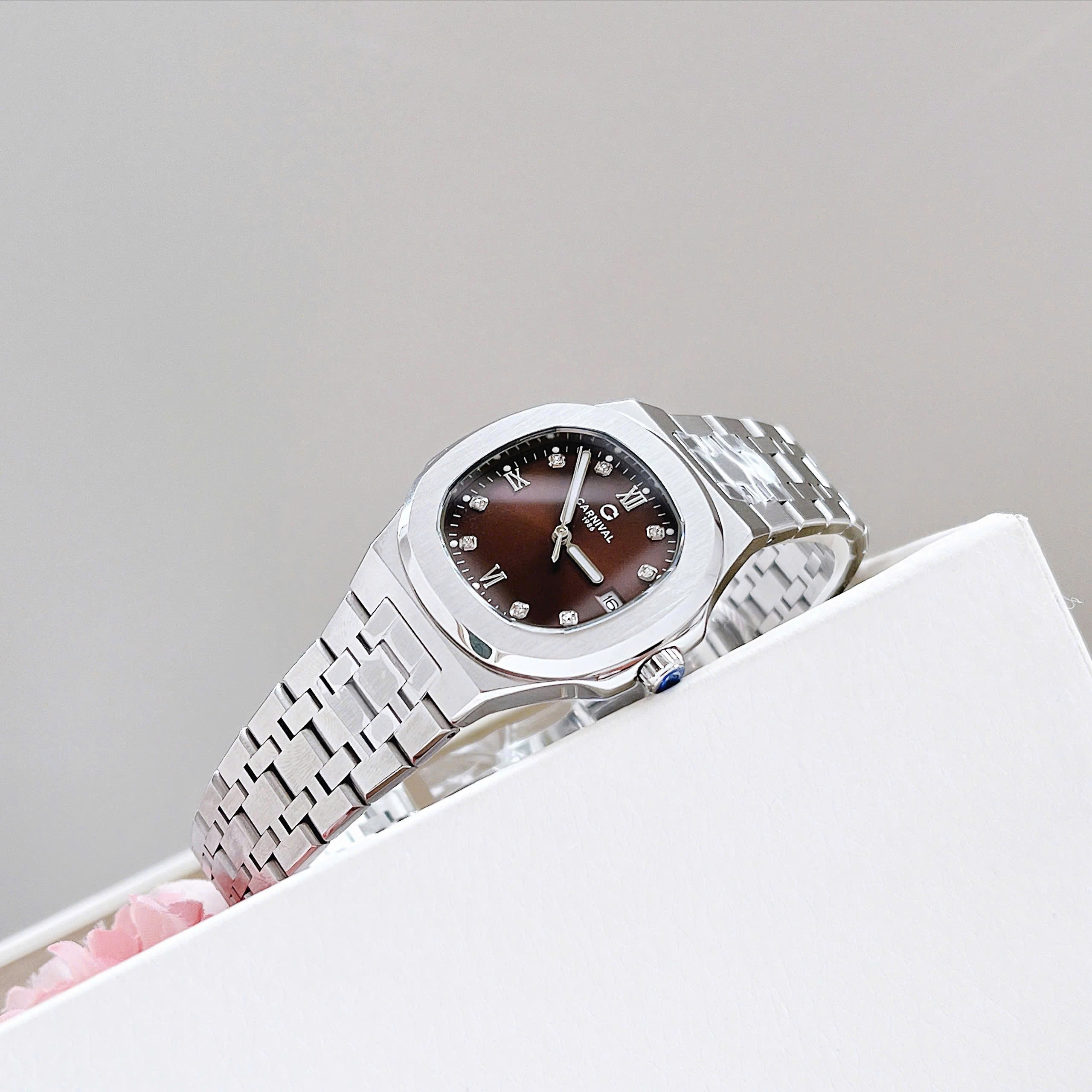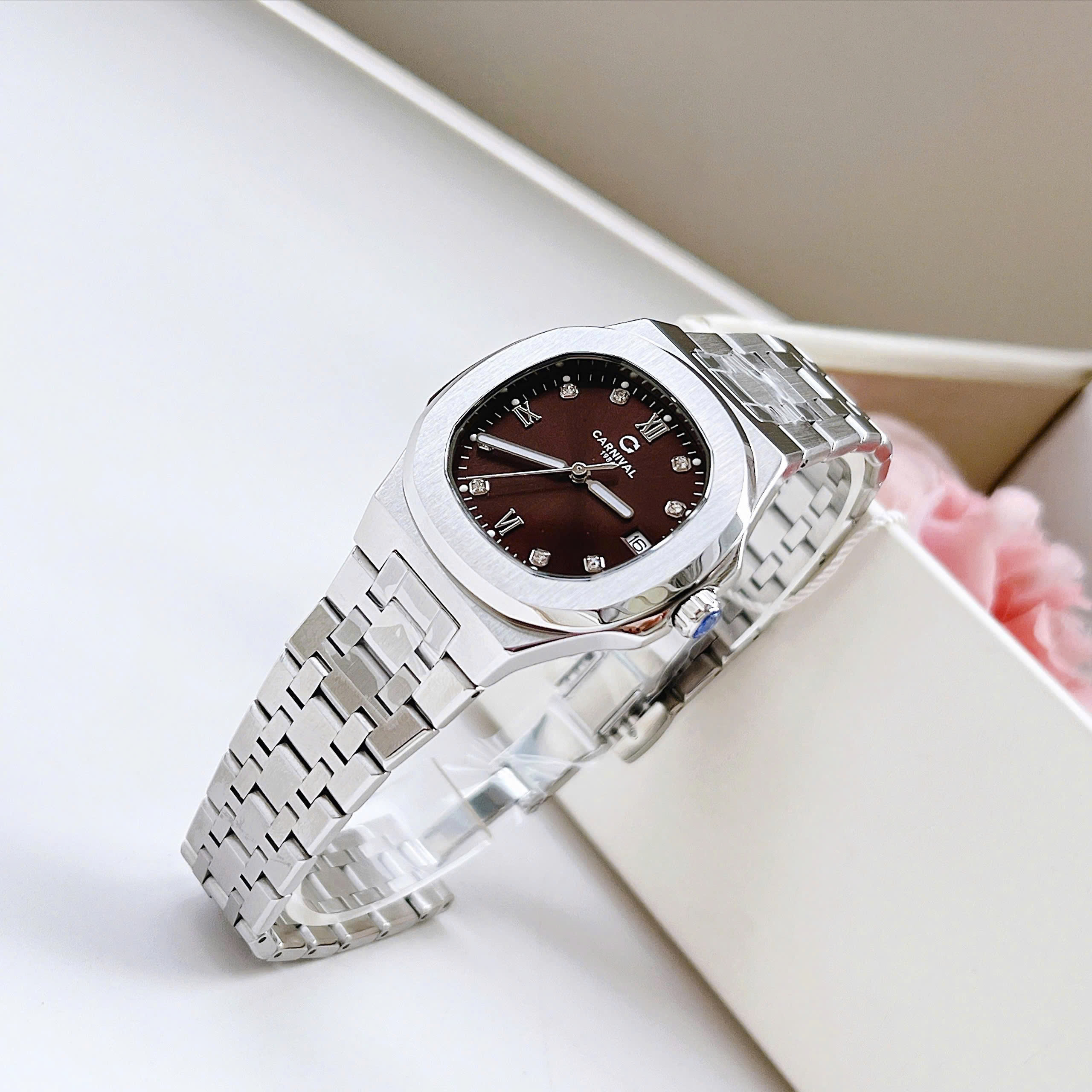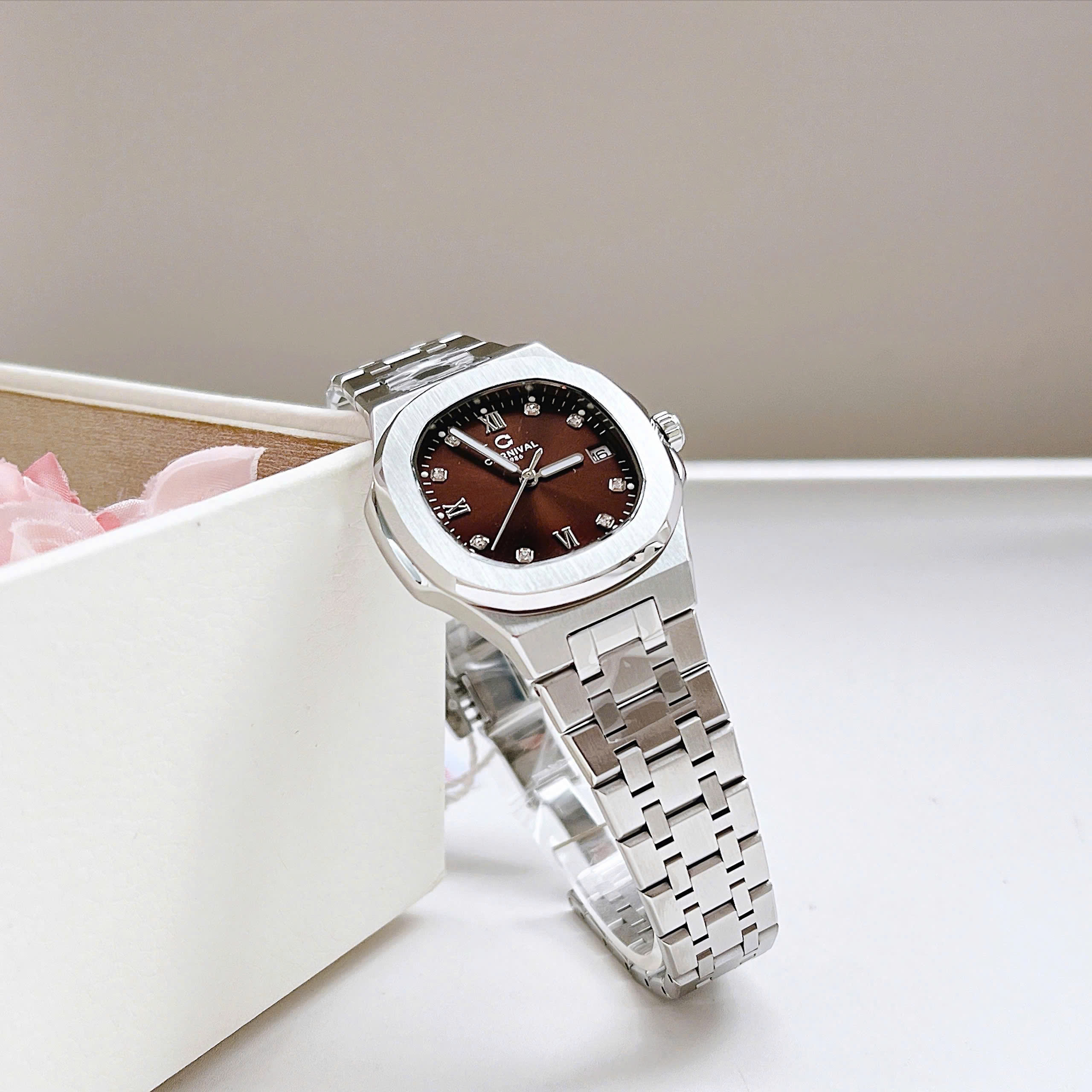 Dây đeo: Carnival thường đi kèm với dây đeo bằng thép không gỉ hoặc dây da cao cấp. Thiết kế dây đeo có thể là mắt cáo (link) hoặc dạng dây đeo đơn (strap), tạo sự linh hoạt và tương thích với nhiều phong cách khác nhau.