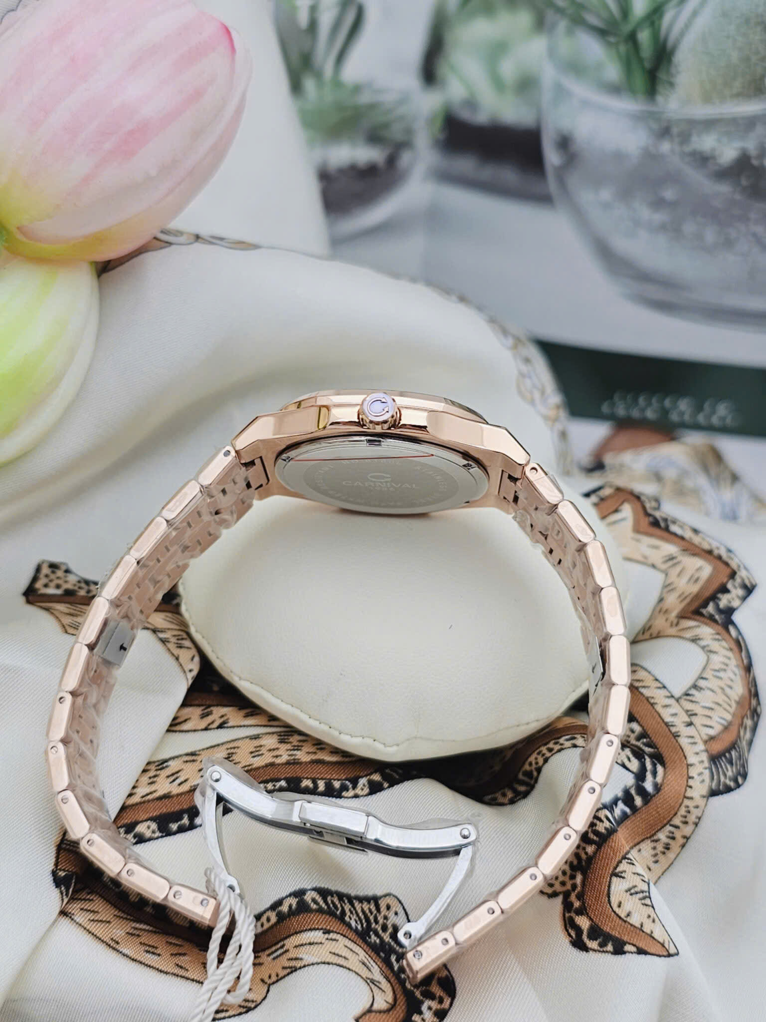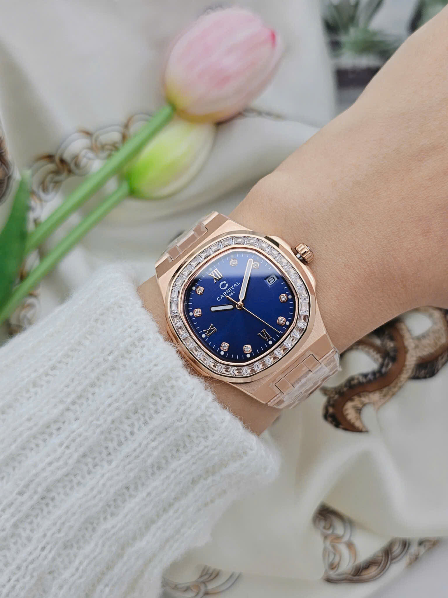 Dây đeo: Carnival thường đi kèm với dây đeo bằng thép không gỉ hoặc dây da cao cấp. Thiết kế dây đeo có thể là mắt cáo (link) hoặc dạng dây đeo đơn (strap), tạo sự linh hoạt và tương thích với nhiều phong cách khác nhau.