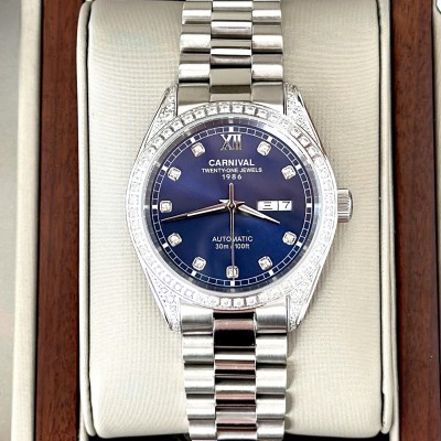ĐỒNG HỒ NAM Carnival Aquanus 8113G – Mặt Blue – Viền Bạc – Dây Cao Su – Automatic – Kính Sapphire