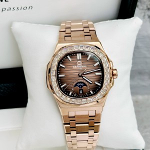 Viền và núm điều chỉnh: Viền của đồng hồ có thiết kế trơn hoặc với các chi tiết nổi bật, tùy thuộc vào phiên bản cụ thể. Núm điều chỉnh có thể được thiết kế với các đường rãnh hoặc đặc trưng của dòng Nautilus, tạo nên sự thuận tiện khi điều chỉnh thời gian.