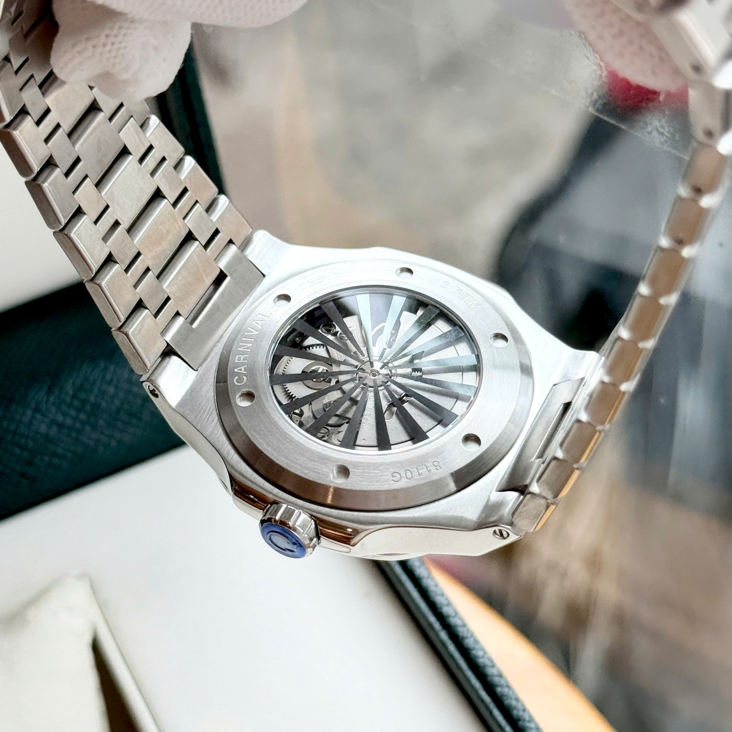 Vỏ và kích thước: Carnival có vỏ đồng hồ được làm từ thép không gỉ chất lượng cao, mang lại độ bền và sự sang trọng. Kích thước của đồng hồ này có thể thay đổi, thông thường nằm trong khoảng từ 40mm đến 44mm, tùy thuộc vào phiên bản cụ thể.