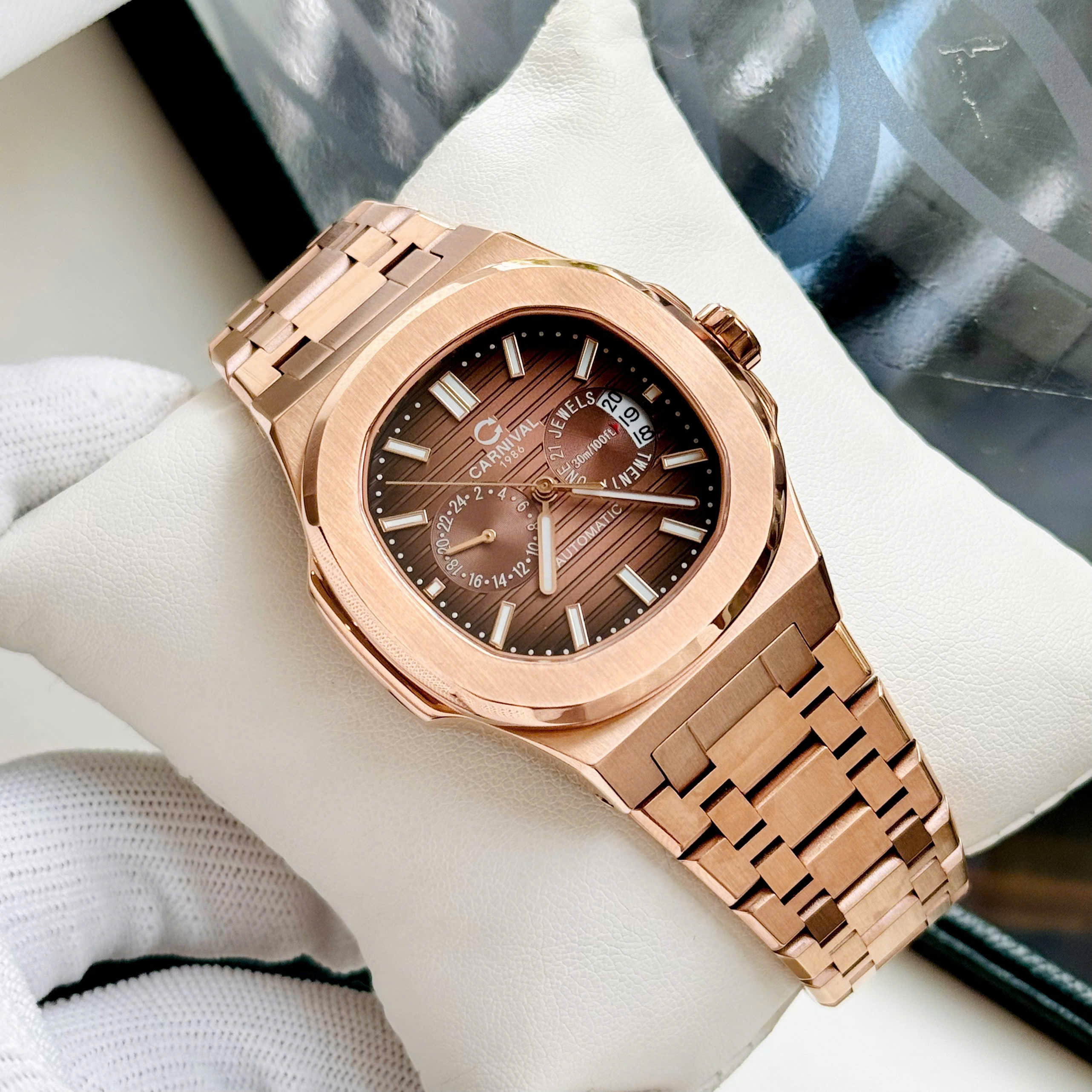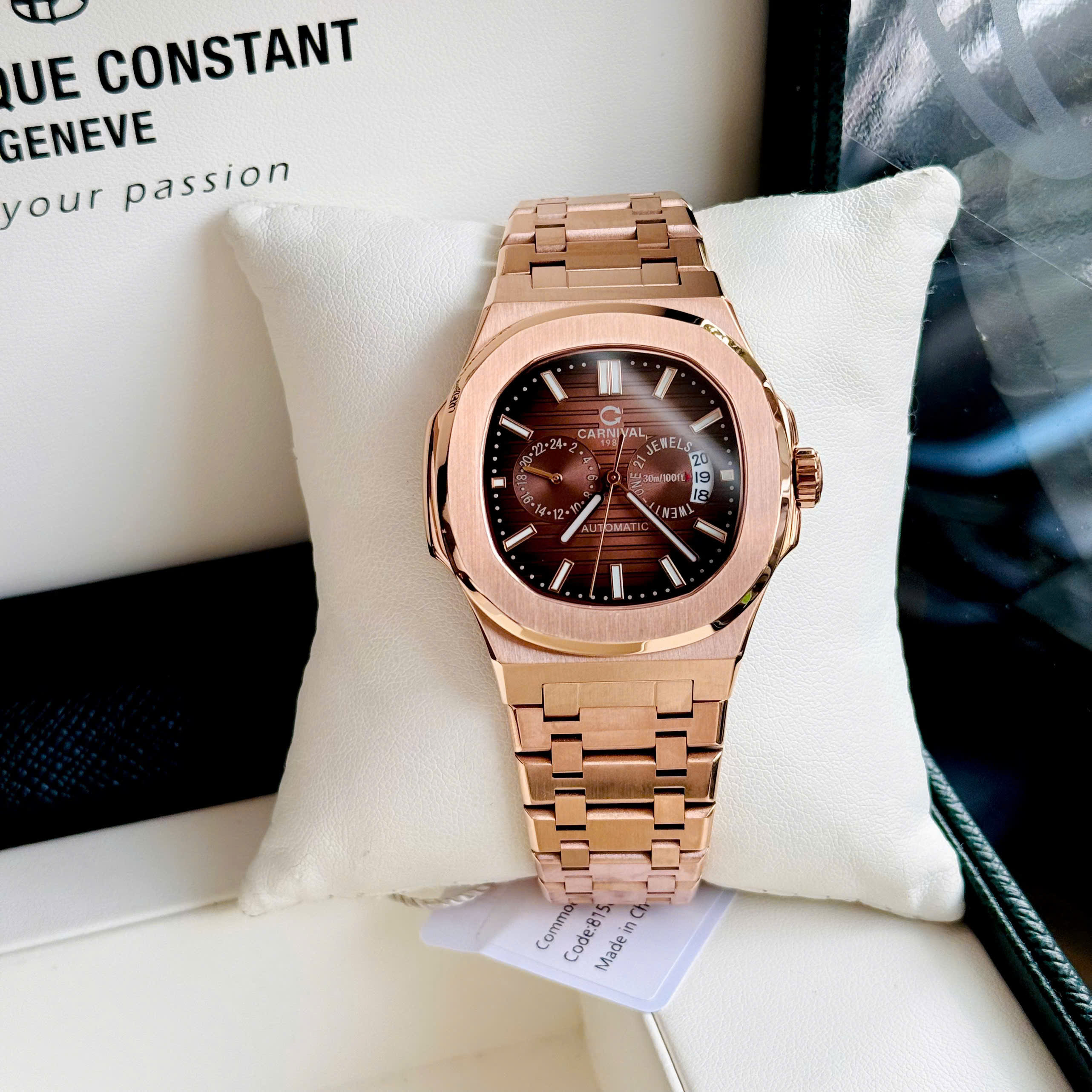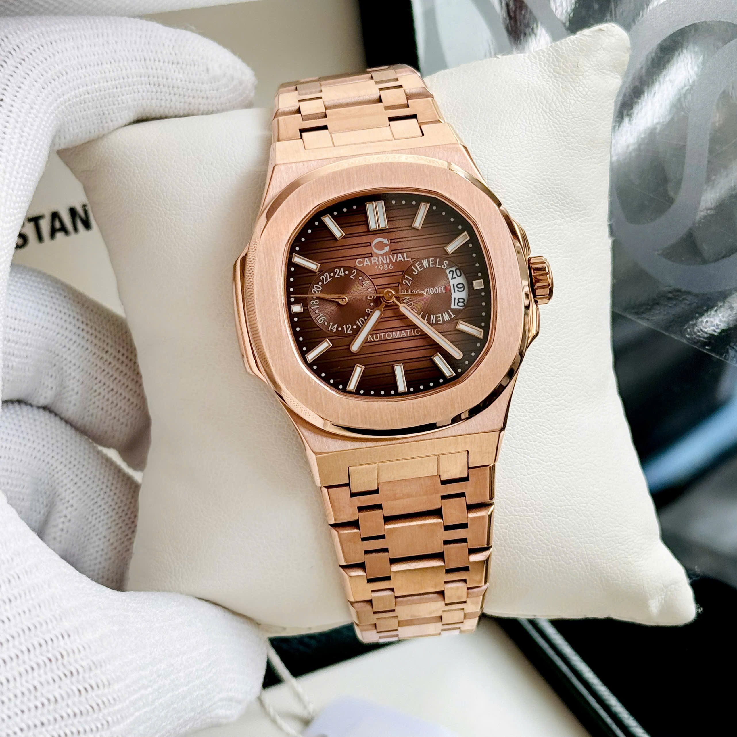 ĐỒNG HỒ NAM Carnival 8158G-VH-N-Dây Thép – Mặt Nâu Cafe – Automatic – Kính Sapphire