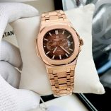 Viền và núm điều chỉnh: Viền của đồng hồ có thiết kế trơn hoặc với các chi tiết nổi bật, tùy thuộc vào phiên bản cụ thể. Núm điều chỉnh có thể được thiết kế với các đường rãnh hoặc đặc trưng của dòng Nautilus, tạo nên sự thuận tiện khi điều chỉnh thời gian.