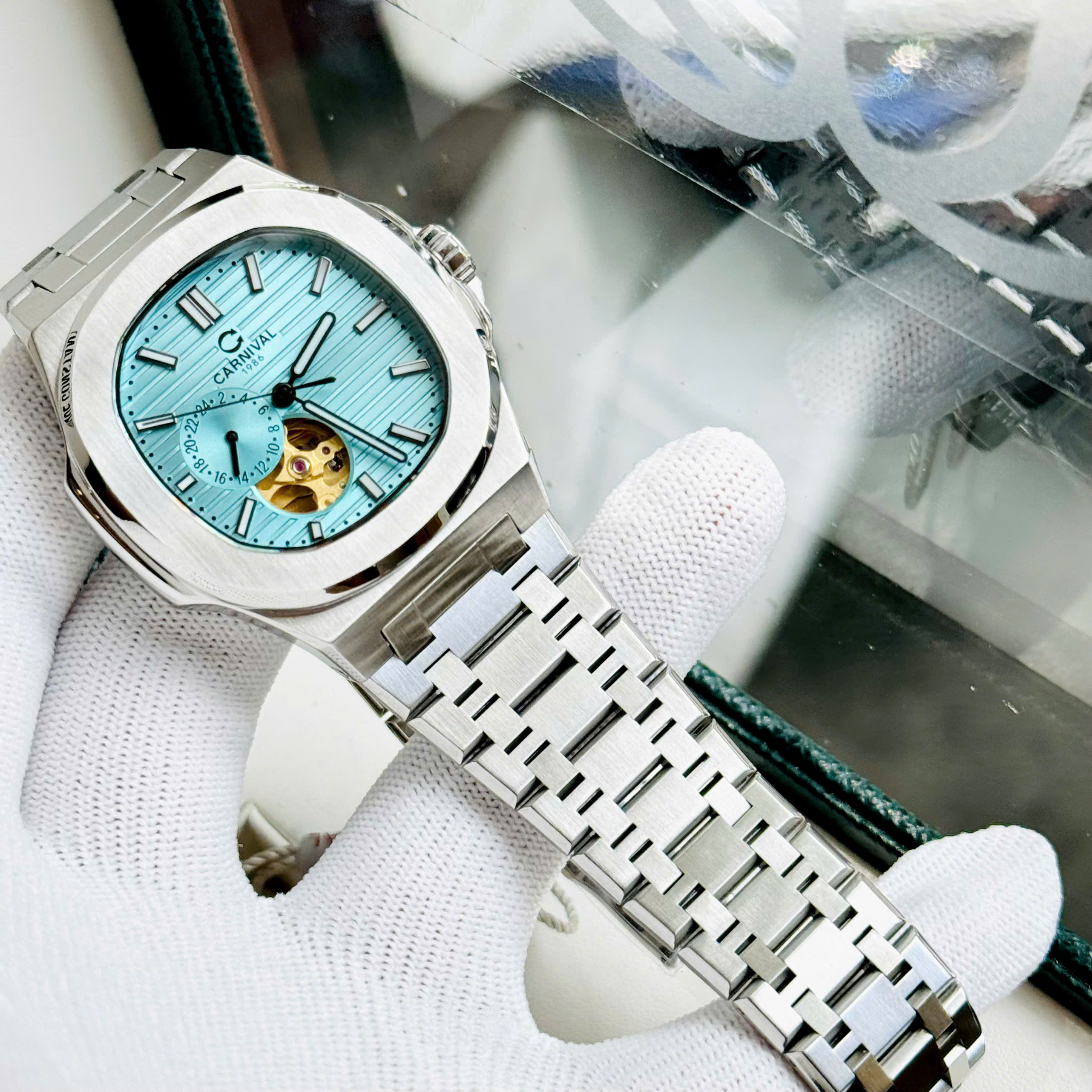Vỏ và kích thước: Carnival Nautilus vỏ đồng hồ được làm từ thép không gỉ chất lượng cao, mang lại độ bền và sự sang trọng. Kích thước của đồng hồ này có thể thay đổi, thông thường nằm trong khoảng từ 40mm đến 44mm, tùy thuộc vào phiên bản cụ thể.