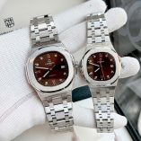 Viền và núm điều chỉnh: Viền của đồng hồ có thiết kế trơn hoặc với các chi tiết nổi bật, tùy thuộc vào phiên bản cụ thể. Núm điều chỉnh có thể được thiết kế với các đường rãnh hoặc đặc trưng của dòng Nautilus, tạo nên sự thuận tiện khi điều chỉnh thời gian.