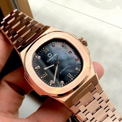 Đồng hồ Carnival được trang bị cỗ máy Automatic được vận hành bởi các bánh răng chuyển động theo nguyên lý cơ học kết hợp với các bộ phận cơ khí và được cung cấp năng lượng bởi cuộn lò xo chính (mainspring) cho độ chính xác gần như tuyệt đối.