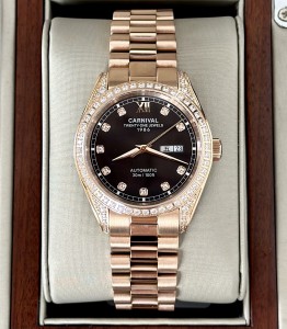 Đồng hồ Carnival được trang bị cỗ máy Automatic được vận hành bởi các bánh răng chuyển động theo nguyên lý cơ học kết hợp với các bộ phận cơ khí và được cung cấp năng lượng bởi cuộn lò xo chính (mainspring) cho độ chính xác gần như tuyệt đối.