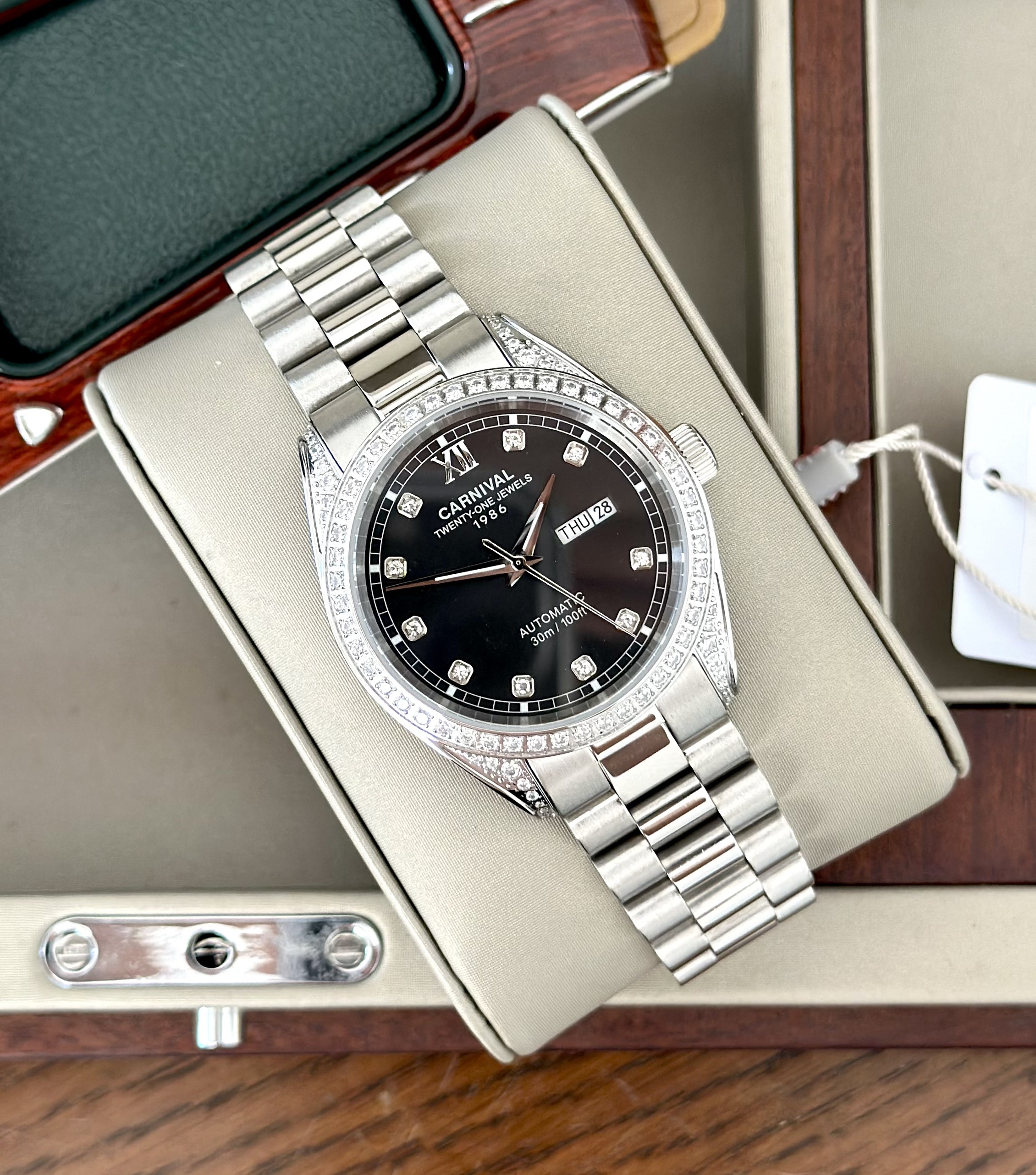 Đồng hồ Carnival được trang bị cỗ máy Automatic được vận hành bởi các bánh răng chuyển động theo nguyên lý cơ học kết hợp với các bộ phận cơ khí và được cung cấp năng lượng bởi cuộn lò xo chính (mainspring) cho độ chính xác gần như tuyệt đối.