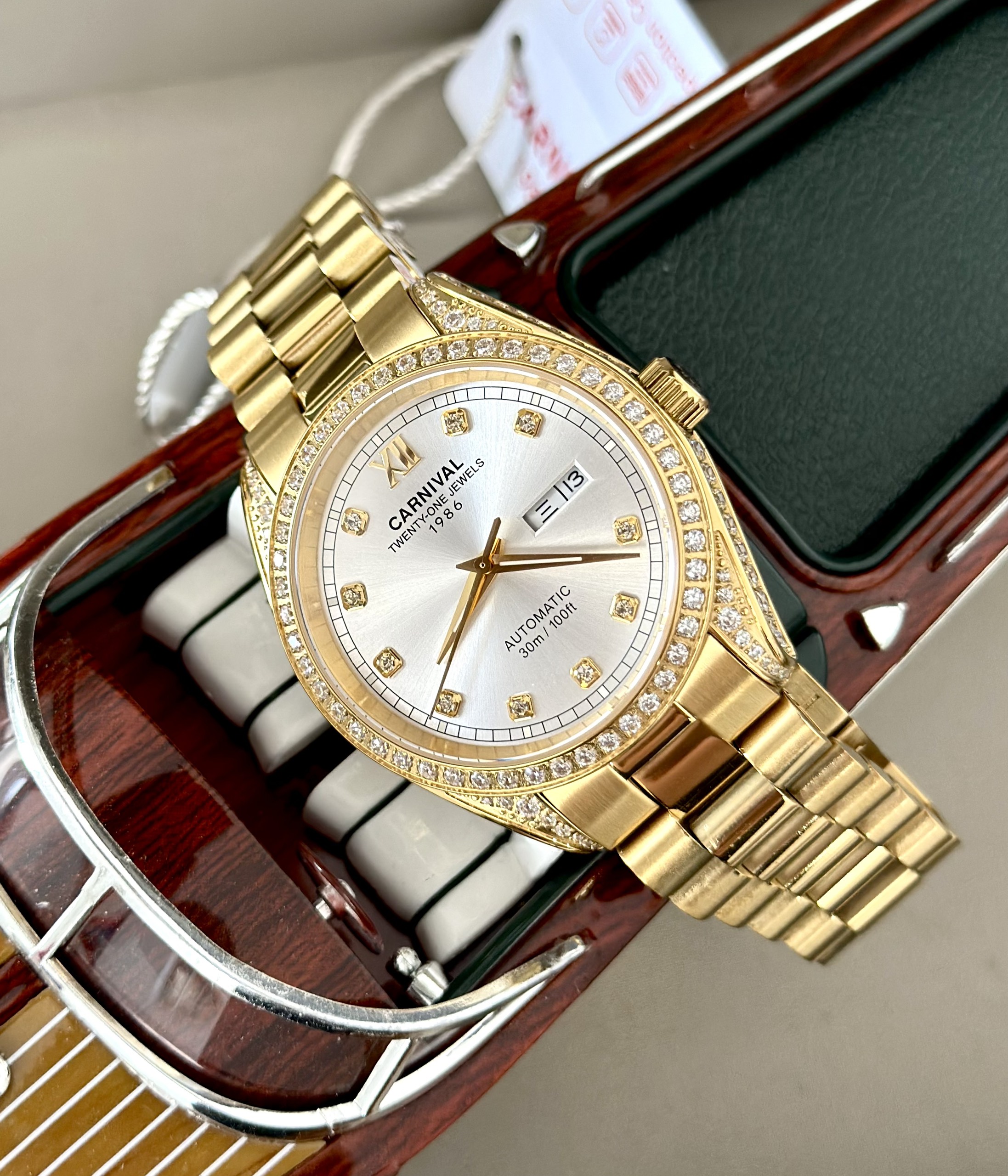 Đồng hồ Carnival được trang bị cỗ máy Automatic được vận hành bởi các bánh răng chuyển động theo nguyên lý cơ học kết hợp với các bộ phận cơ khí và được cung cấp năng lượng bởi cuộn lò xo chính (mainspring) cho độ chính xác gần như tuyệt đối.