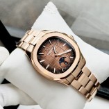 Viền và núm điều chỉnh: Viền của đồng hồ có thiết kế trơn hoặc với các chi tiết nổi bật, tùy thuộc vào phiên bản cụ thể. Núm điều chỉnh có thể được thiết kế với các đường rãnh hoặc đặc trưng của dòng Nautilus, tạo nên sự thuận tiện khi điều chỉnh thời gian.