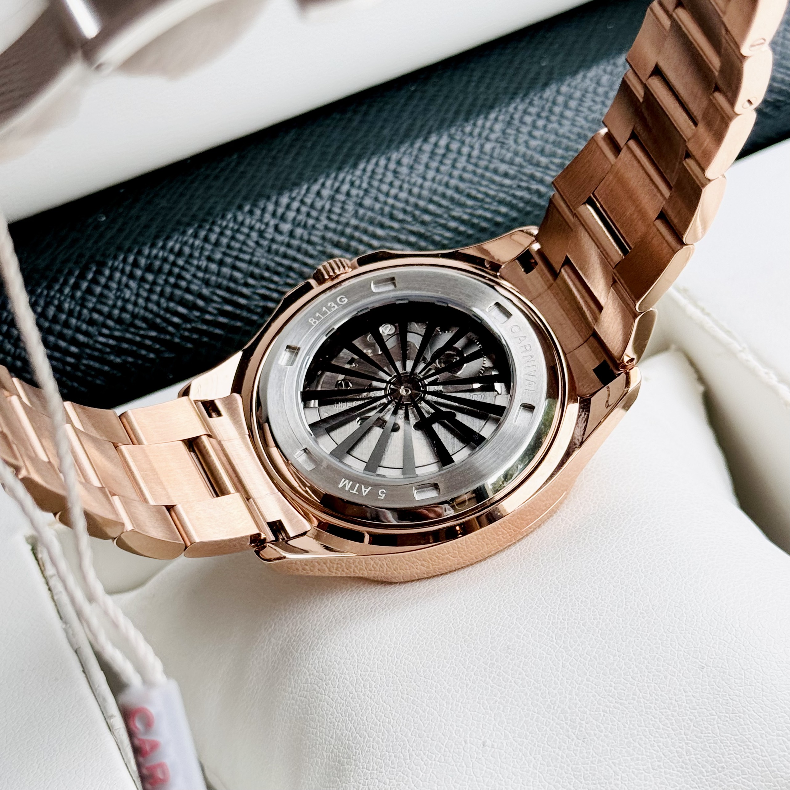 ĐỒNG HỒ NAM Carnival Aquanus 8113G – Mặt Vàng – Viền Vàng – Dây Thép – Automatic – Kính Sapphire