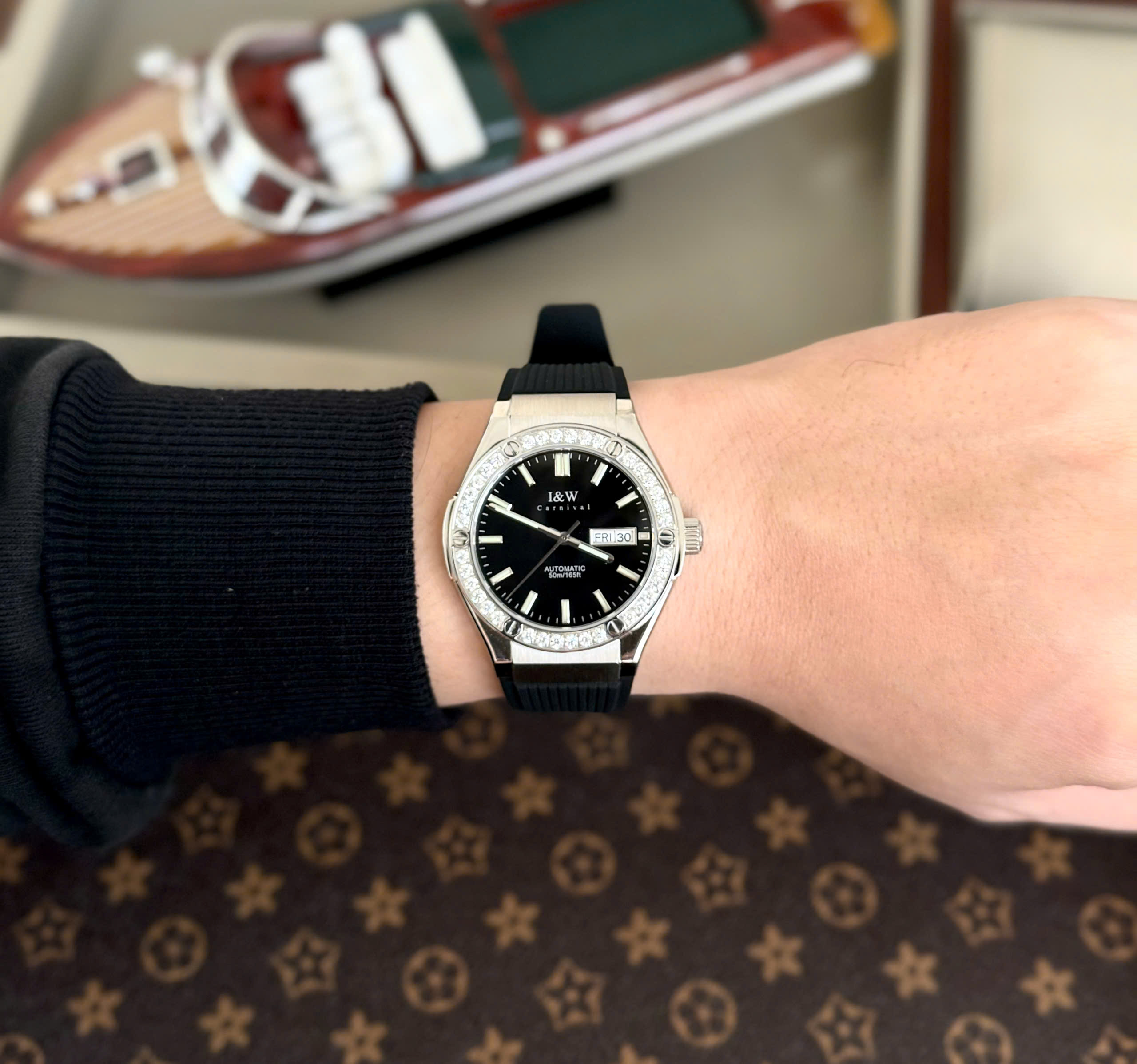 Đồng hồ nam I&W Carnival được thiết kế với sự cân đối và hiện đại, lấy cảm hứng từ thiết kế cổ điển và thể thao. Dưới đây là mô tả tổng quan về thiết kế của đồng hồ này: