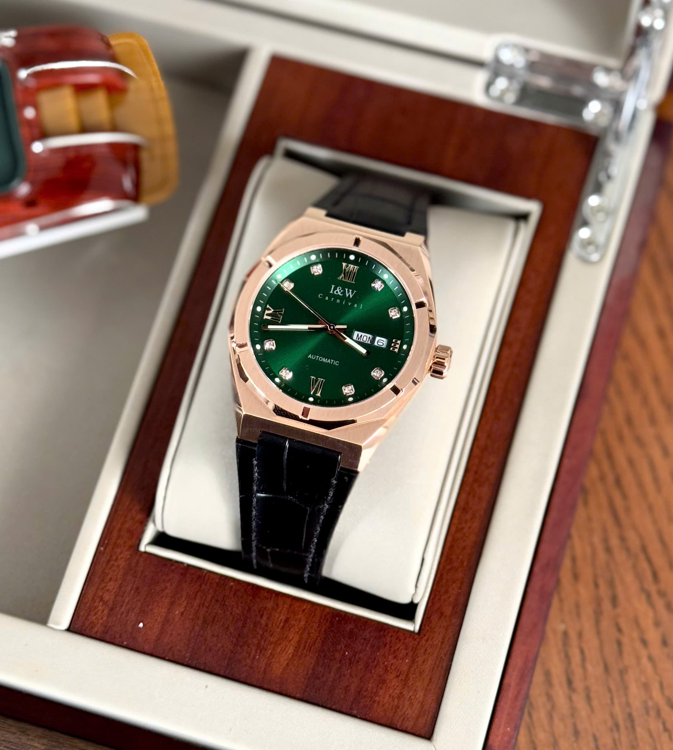 ĐỒNG HỒ NAM I&W CARNIVAL 751G Rose Xanh Lá – Dây Da – Automatic- Kính Sapphire