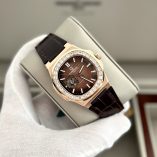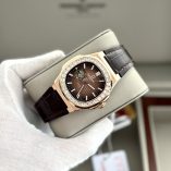 Viền và núm điều chỉnh: Viền của đồng hồ có thiết kế trơn hoặc với các chi tiết nổi bật, tùy thuộc vào phiên bản cụ thể. Núm điều chỉnh có thể được thiết kế với các đường rãnh hoặc đặc trưng của dòng Nautilus, tạo nên sự thuận tiện khi điều chỉnh thời gian.