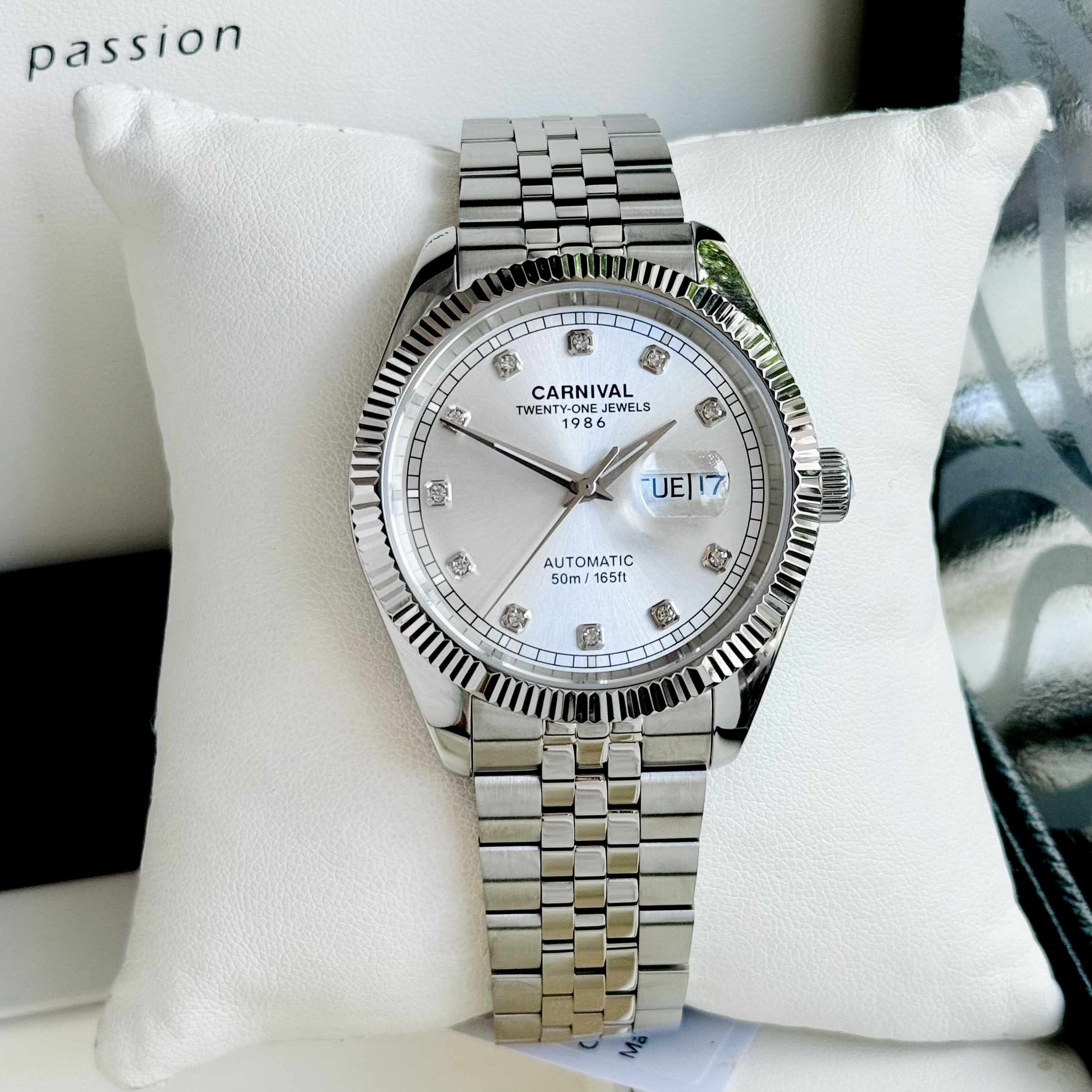 Đồng hồ Carnival được trang bị cỗ máy Automatic được vận hành bởi các bánh răng chuyển động theo nguyên lý cơ học kết hợp với các bộ phận cơ khí và được cung cấp năng lượng bởi cuộn lò xo chính (mainspring) cho độ chính xác gần như tuyệt đối.