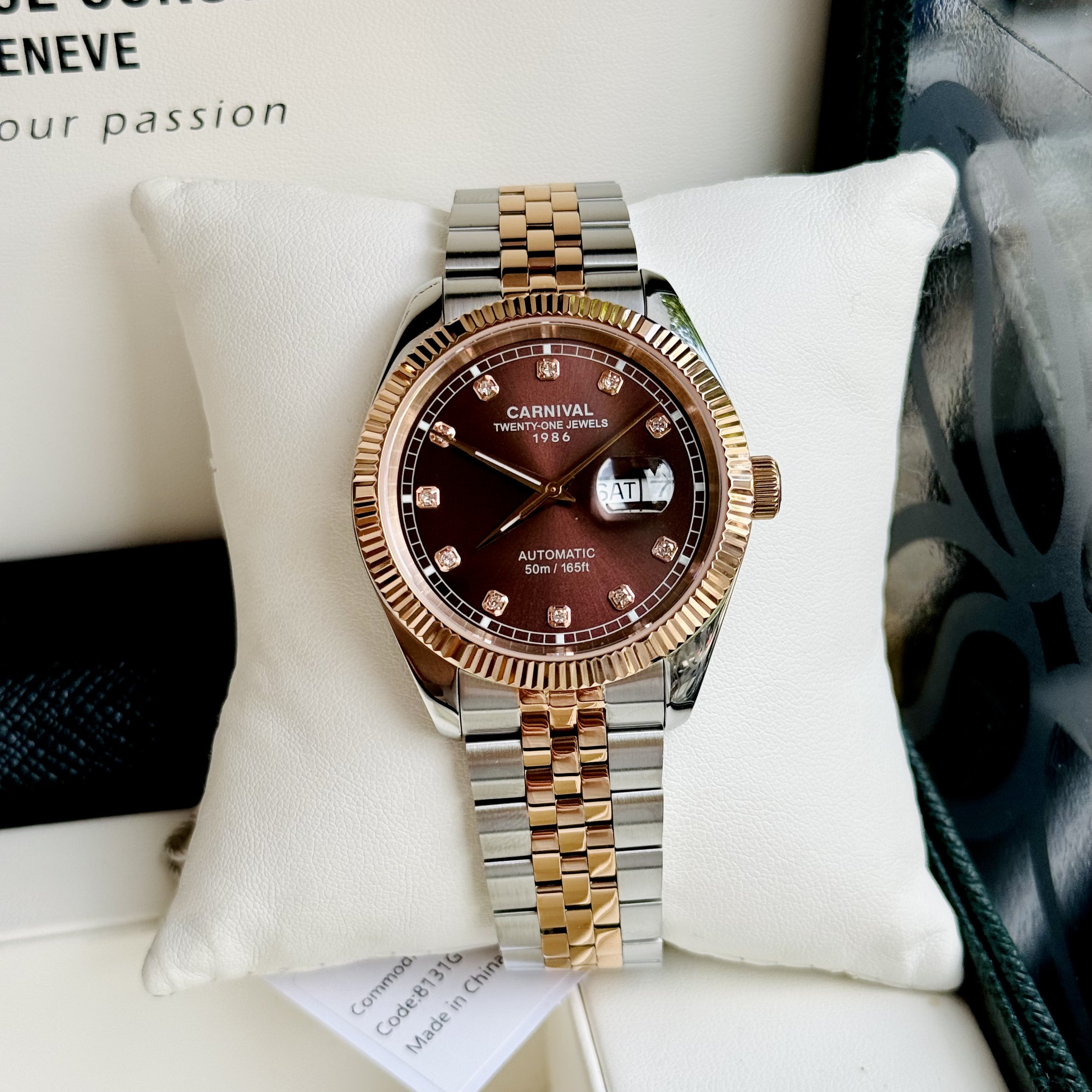 ĐỒNG HỒ NAM I&W Carnival 8131G Dây Thép Demi – Mặt Nâu – Automatic – Kính Sapphire