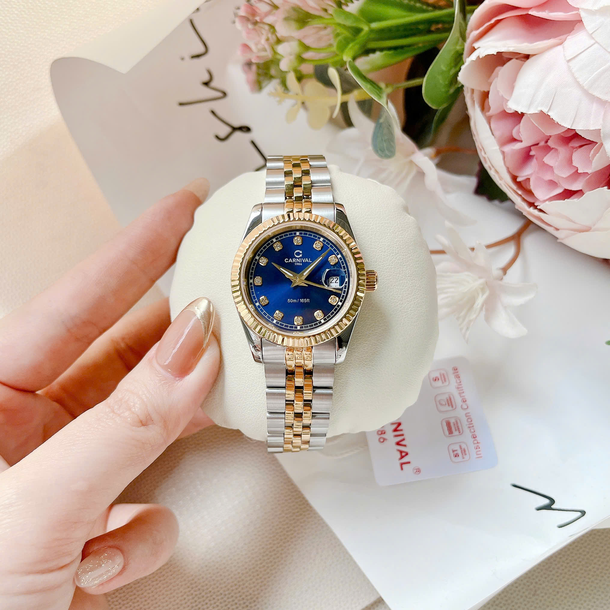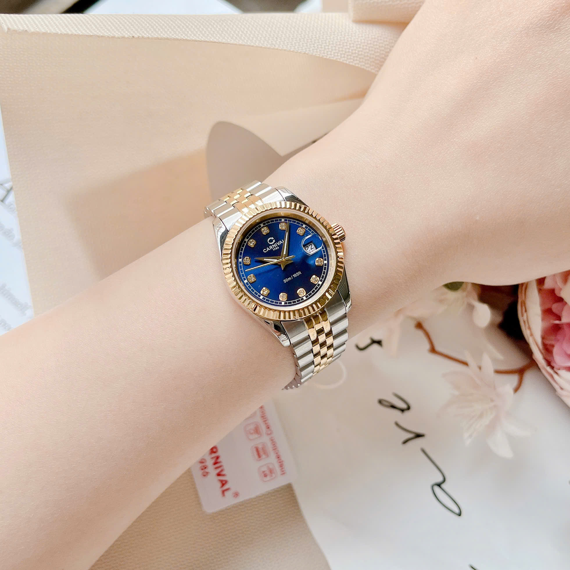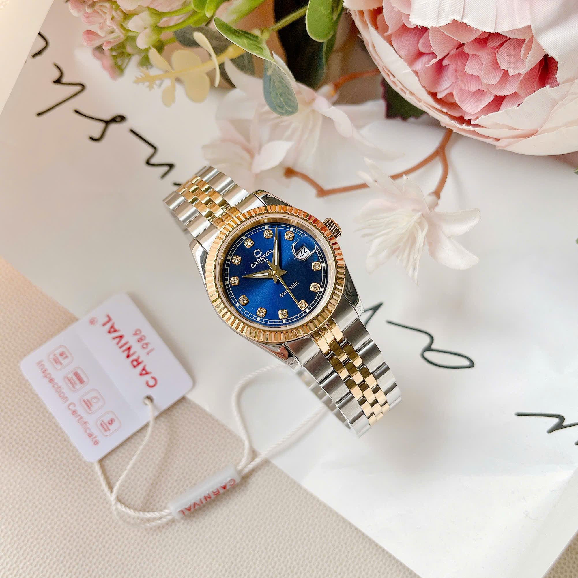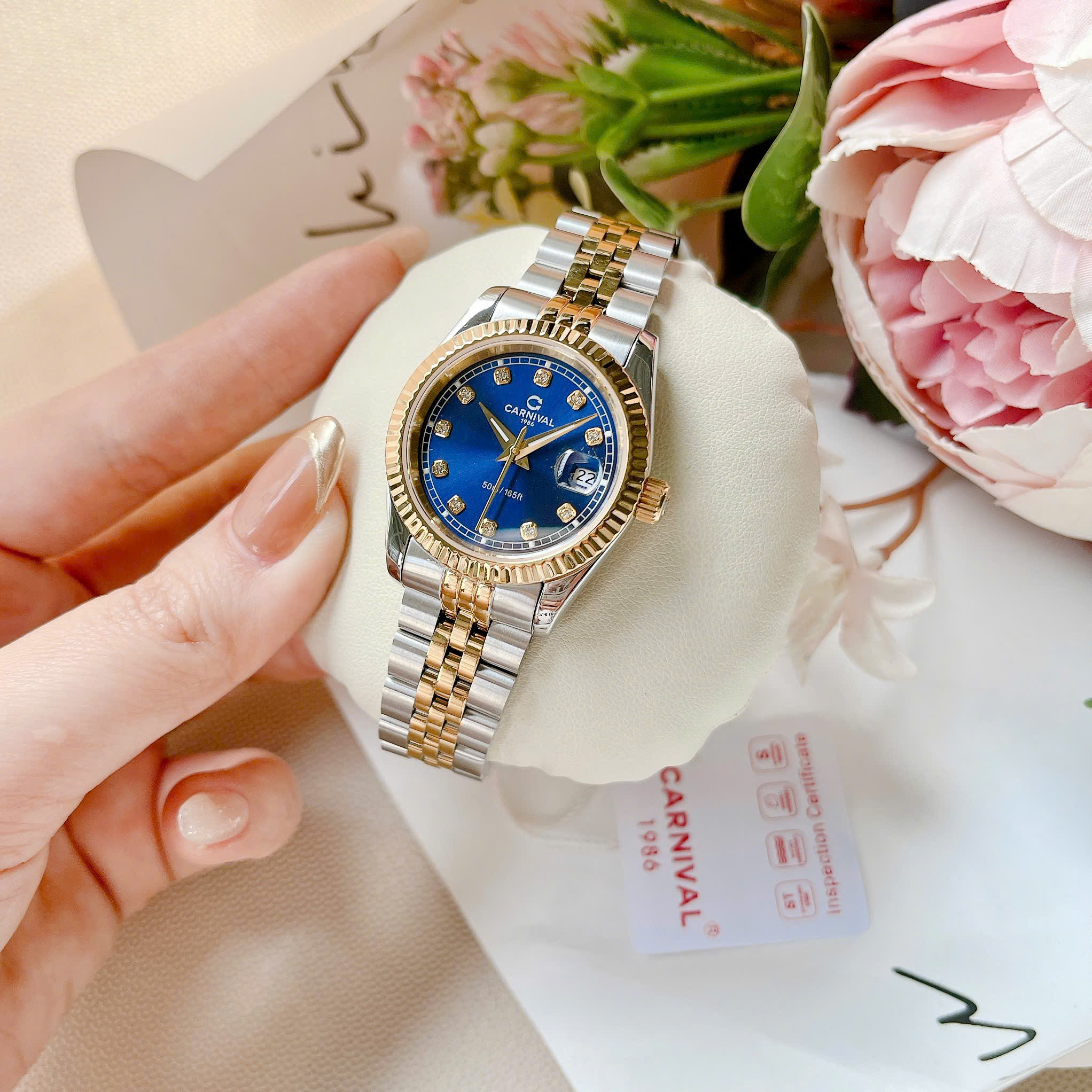 ĐỒNG HỒ Nữ Carnival 8131L-CV-X- Mặt Xanh – Demi Vàng – Pin – Kính Sapphire