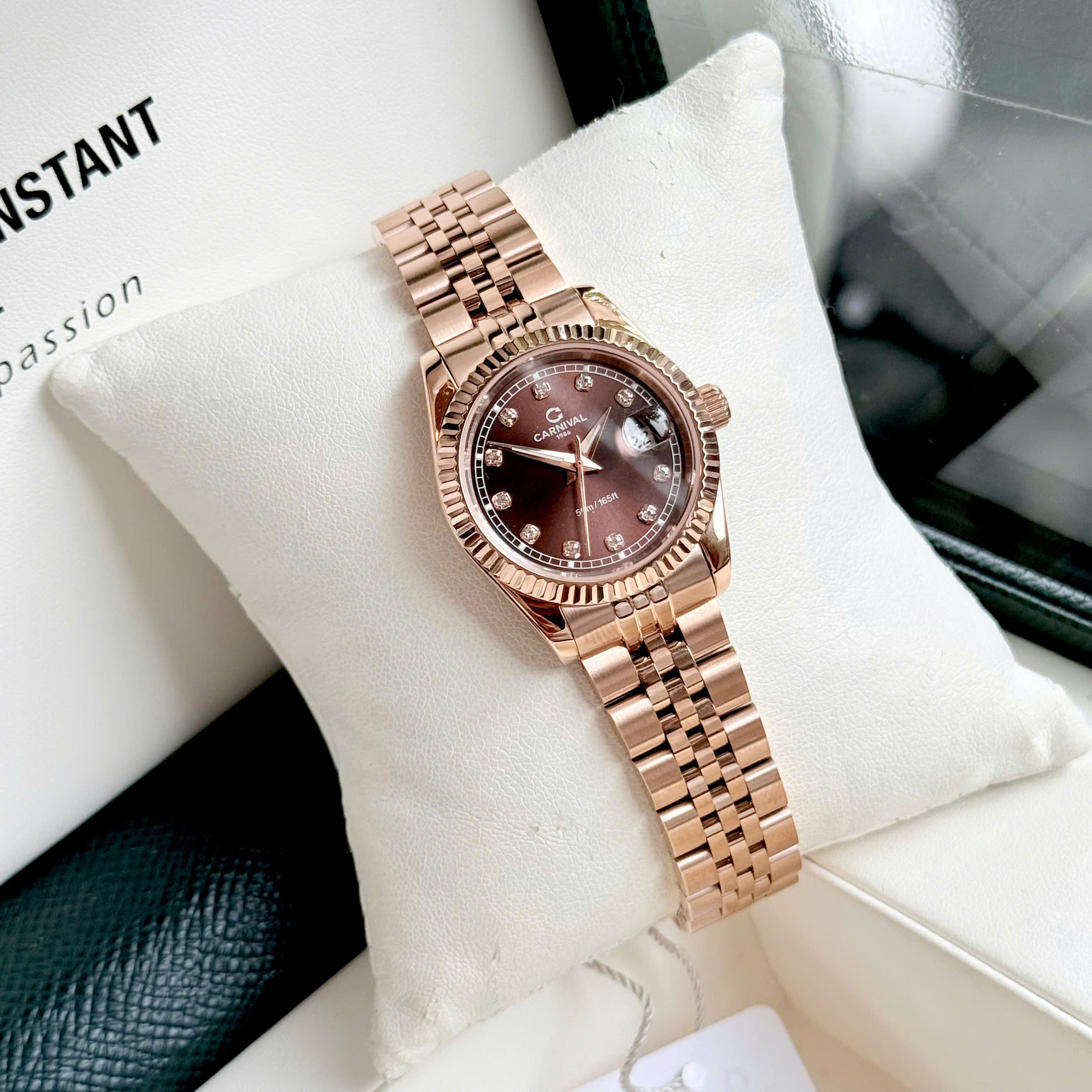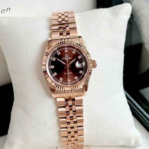 ĐỒNG HỒ Nữ Carnival 8131L-VH-N Mặt Nâu-Dây Thép-Pin-Kính Sapphire