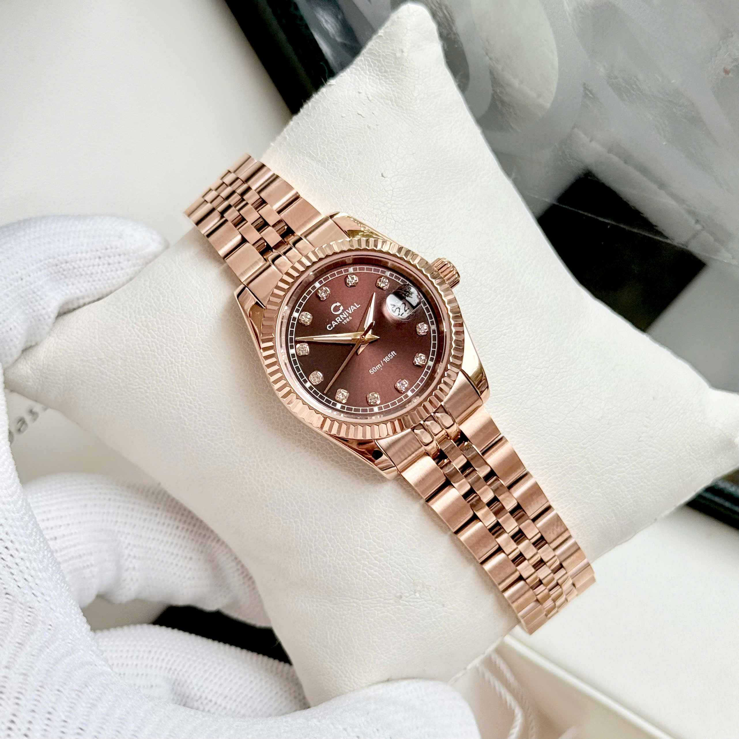 Dây đeo: Carnival  thường đi kèm với dây đeo bằng thép không gỉ hoặc dây da cao cấp. Thiết kế dây đeo có thể là mắt cáo (link) hoặc dạng dây đeo đơn (strap), tạo sự linh hoạt và tương thích với nhiều phong cách khác nhau.