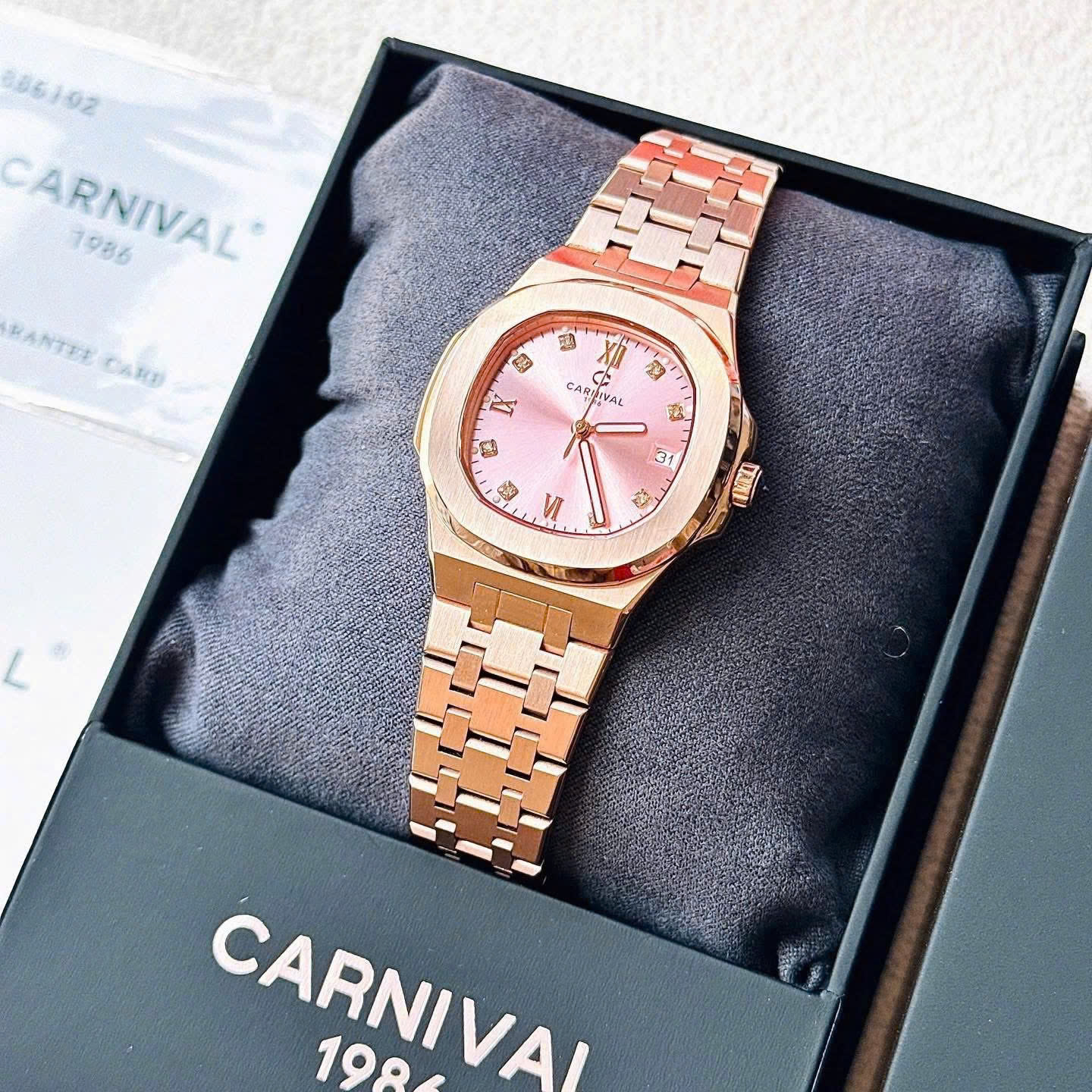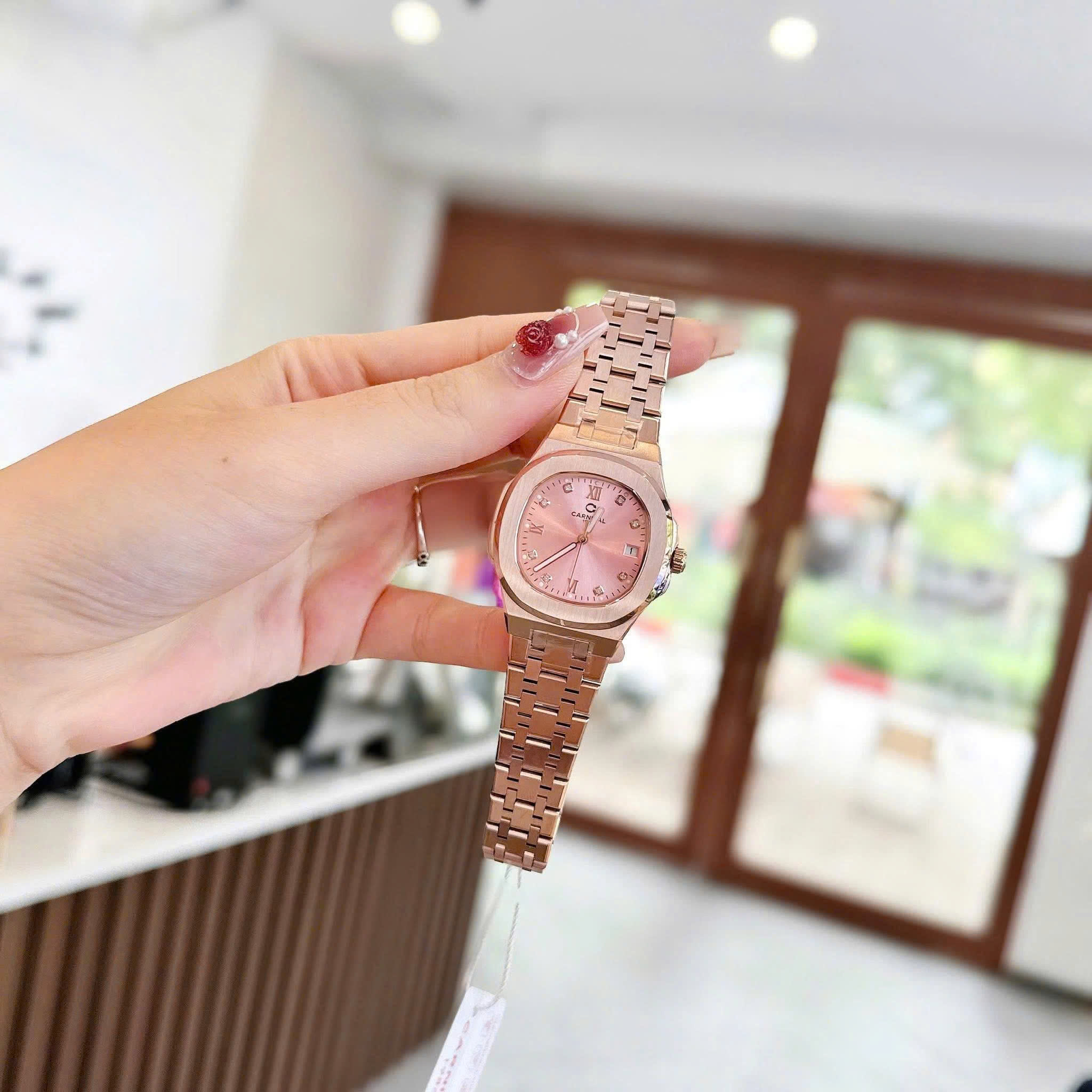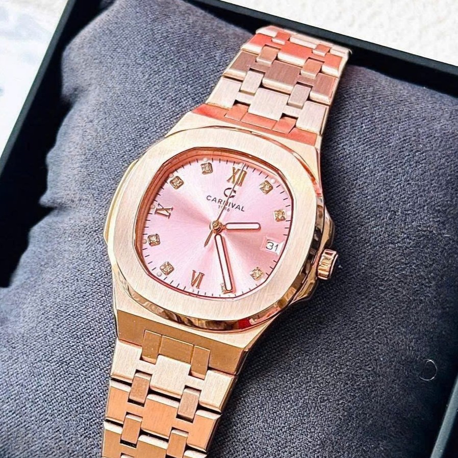 ĐỒNG HỒ Nữ Carnival 8160L-VH-H Mặt Hồng-Dây Thép-Pin-Kính Sapphire