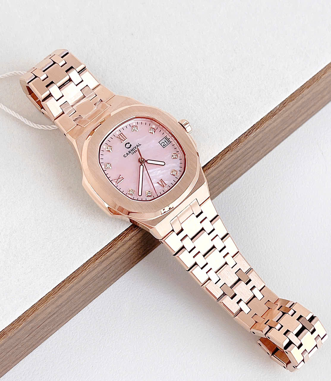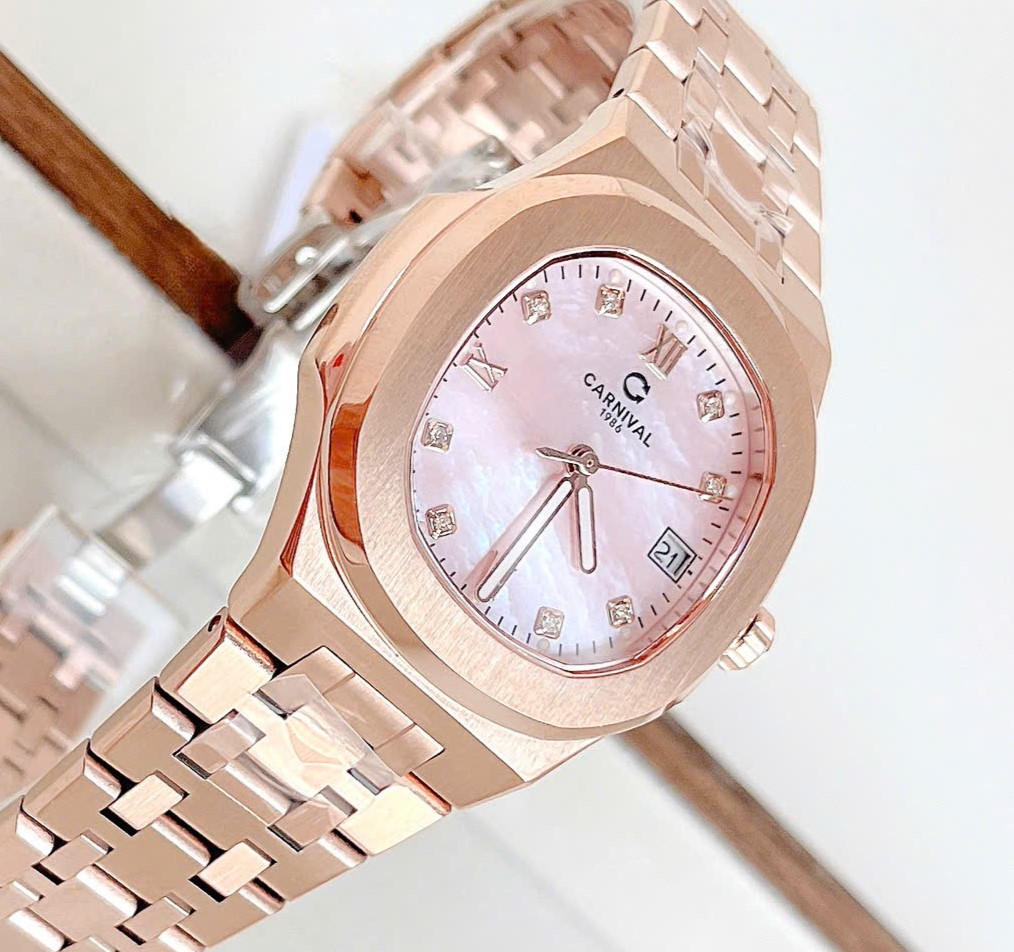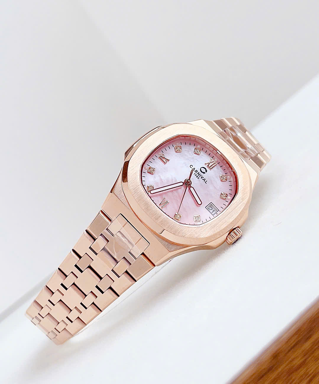 Dây đeo: Carnival thường đi kèm với dây đeo bằng thép không gỉ hoặc dây da cao cấp. Thiết kế dây đeo có thể là mắt cáo (link) hoặc dạng dây đeo đơn (strap), tạo sự linh hoạt và tương thích với nhiều phong cách khác nhau.