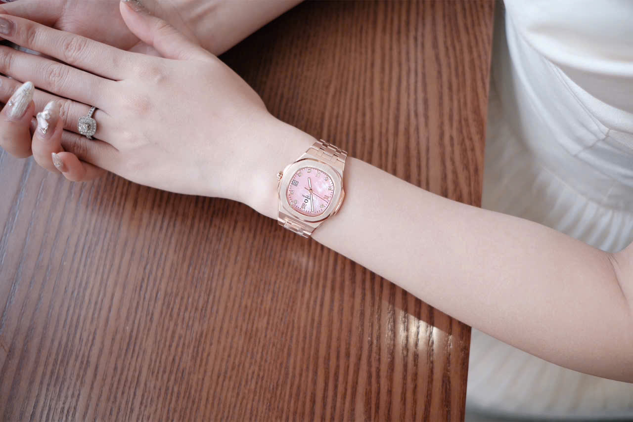 Viền và núm điều chỉnh: Viền của đồng hồ có thiết kế trơn hoặc với các chi tiết nổi bật, tùy thuộc vào phiên bản cụ thể. Núm điều chỉnh có thể được thiết kế với các đường rãnh hoặc đặc trưng của dòng Nautilus, tạo nên sự thuận tiện khi điều chỉnh thời gian.