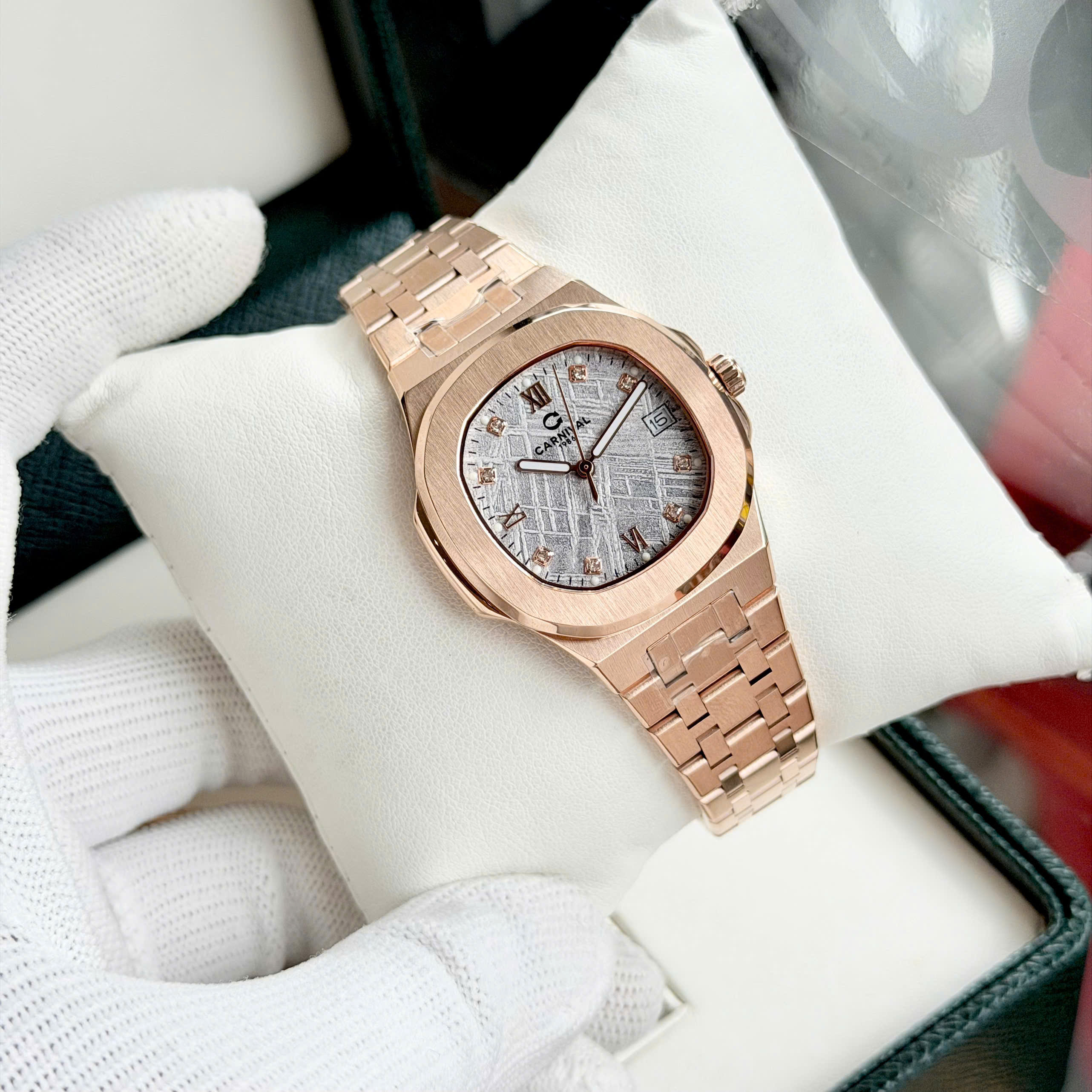 Vỏ và kích thước: Carnival vỏ đồng hồ được làm từ thép không gỉ chất lượng cao, mang lại độ bền và sự sang trọng. Kích thước của đồng hồ này có thể thay đổi, thông thường nằm trong khoảng từ 40mm đến 44mm, tùy thuộc vào phiên bản cụ thể.