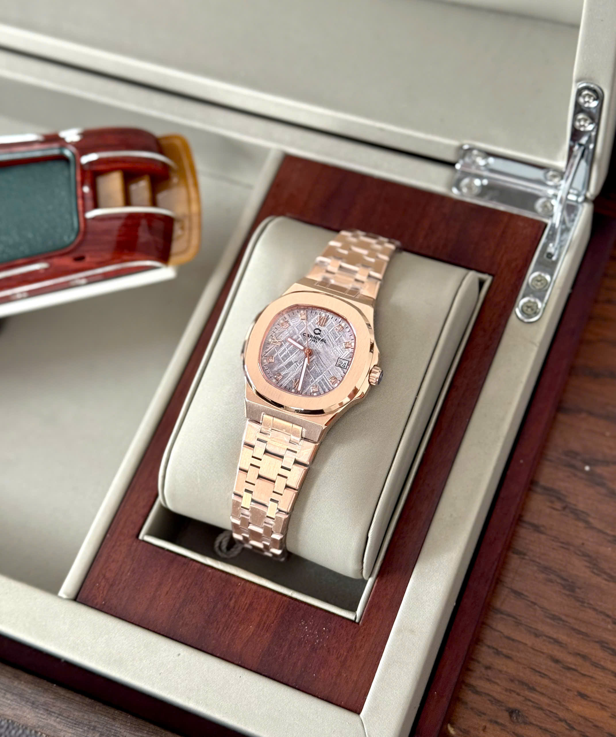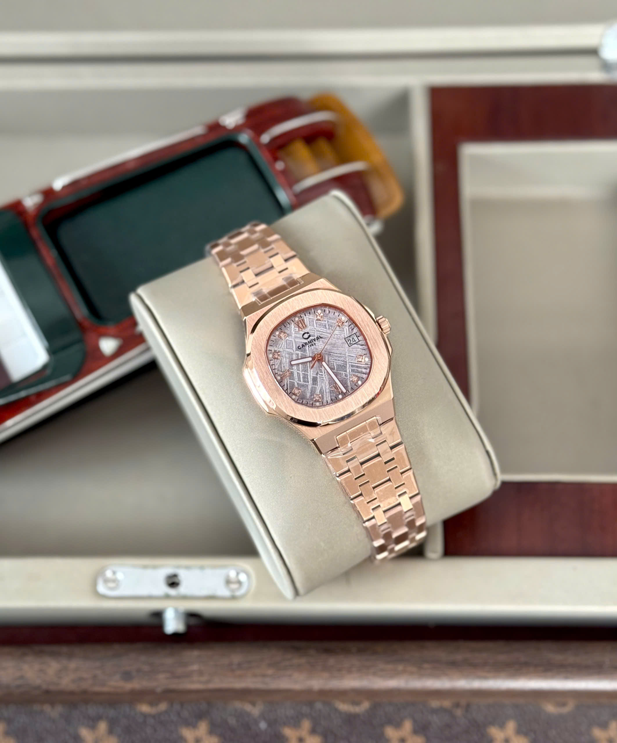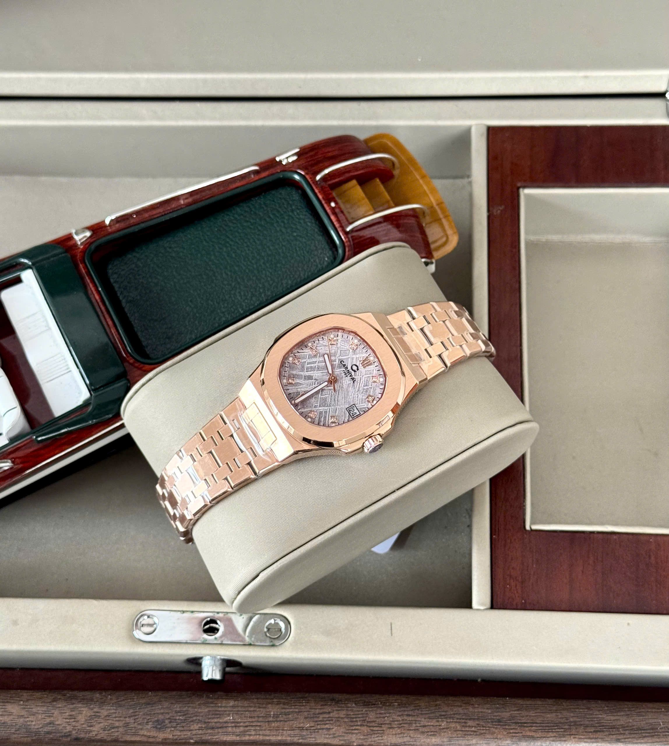 Viền và núm điều chỉnh: Viền của đồng hồ có thiết kế trơn hoặc với các chi tiết nổi bật, tùy thuộc vào phiên bản cụ thể. Núm điều chỉnh có thể được thiết kế với các đường rãnh hoặc đặc trưng của dòng Nautilus, tạo nên sự thuận tiện khi điều chỉnh thời gian.