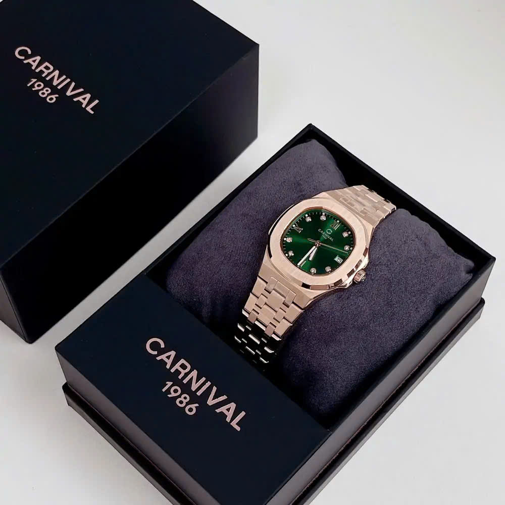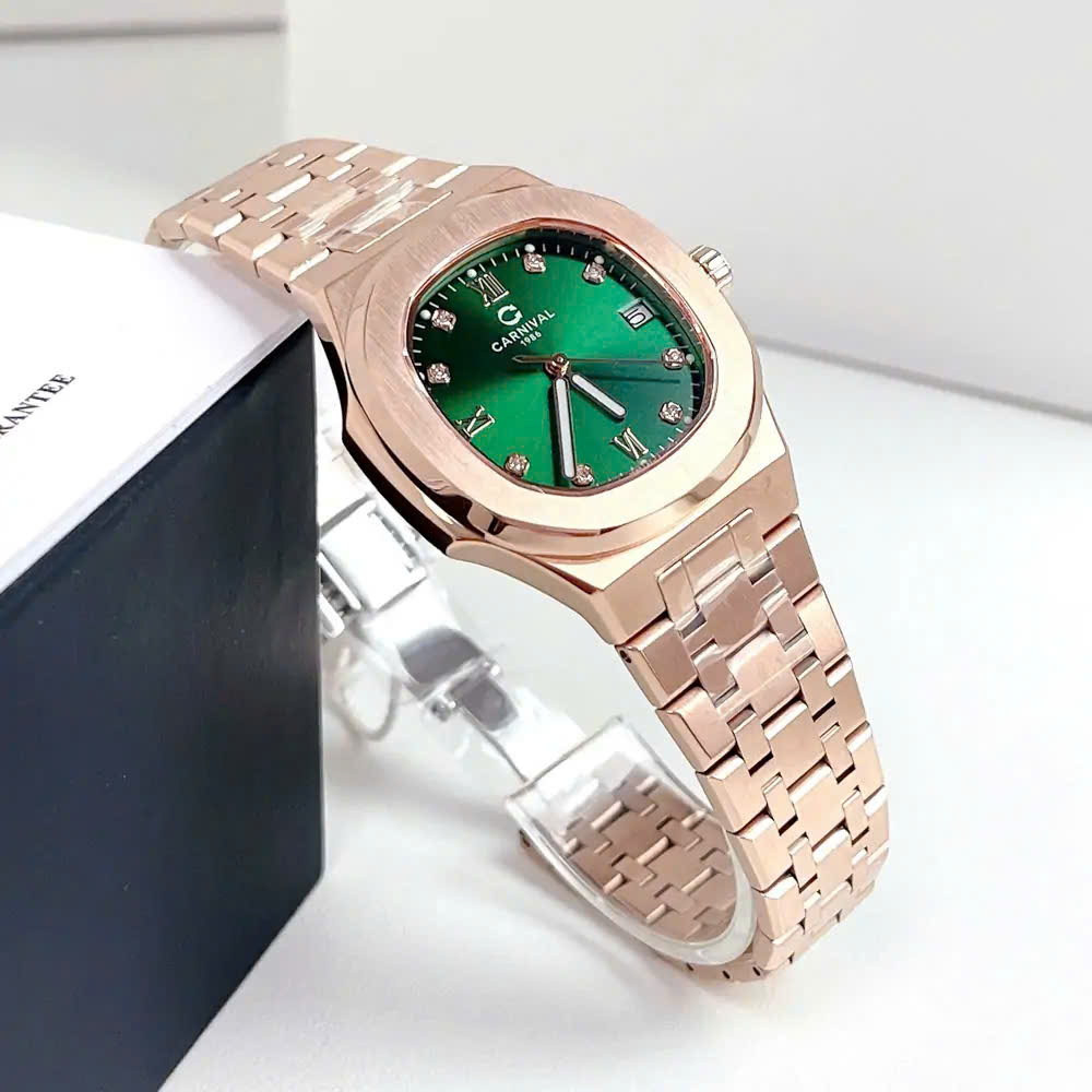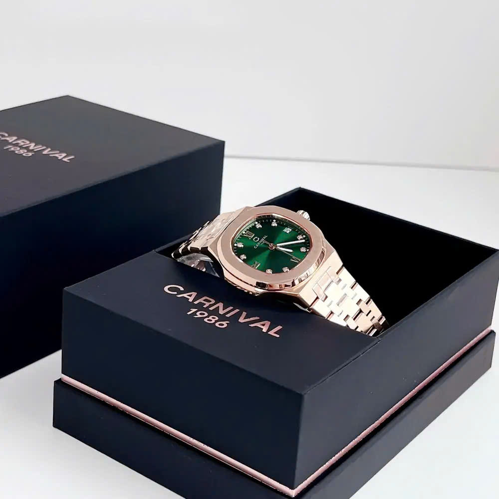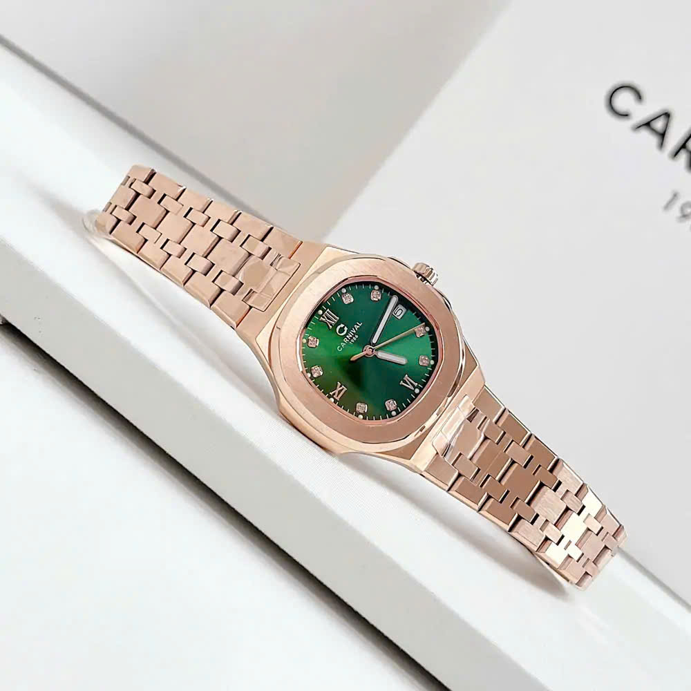 ĐỒNG HỒ Nữ Carnival 8160L-VH-XL Mặt Xanh Lá-Dây Thép-Pin-Kính Sapphire