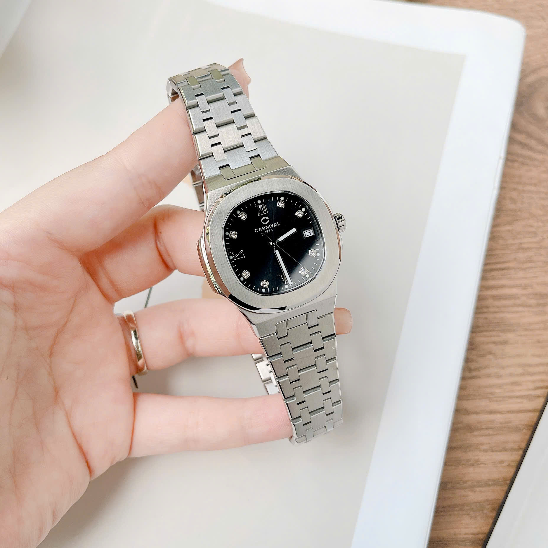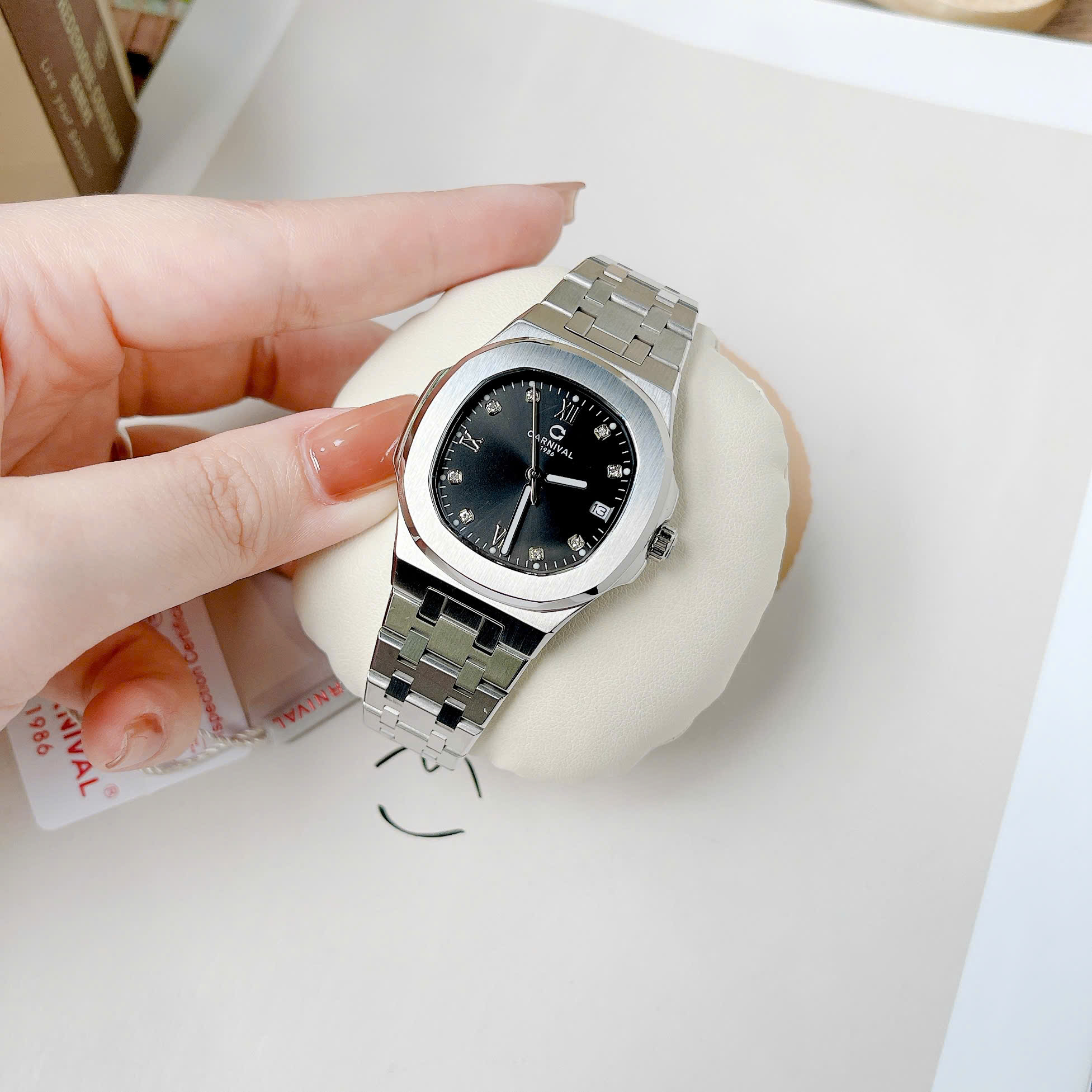 ĐỒNG HỒ Nữ Carnival 8160L-VT-D Mặt Đen-Dây Thép-Pin-Kính Sapphire
