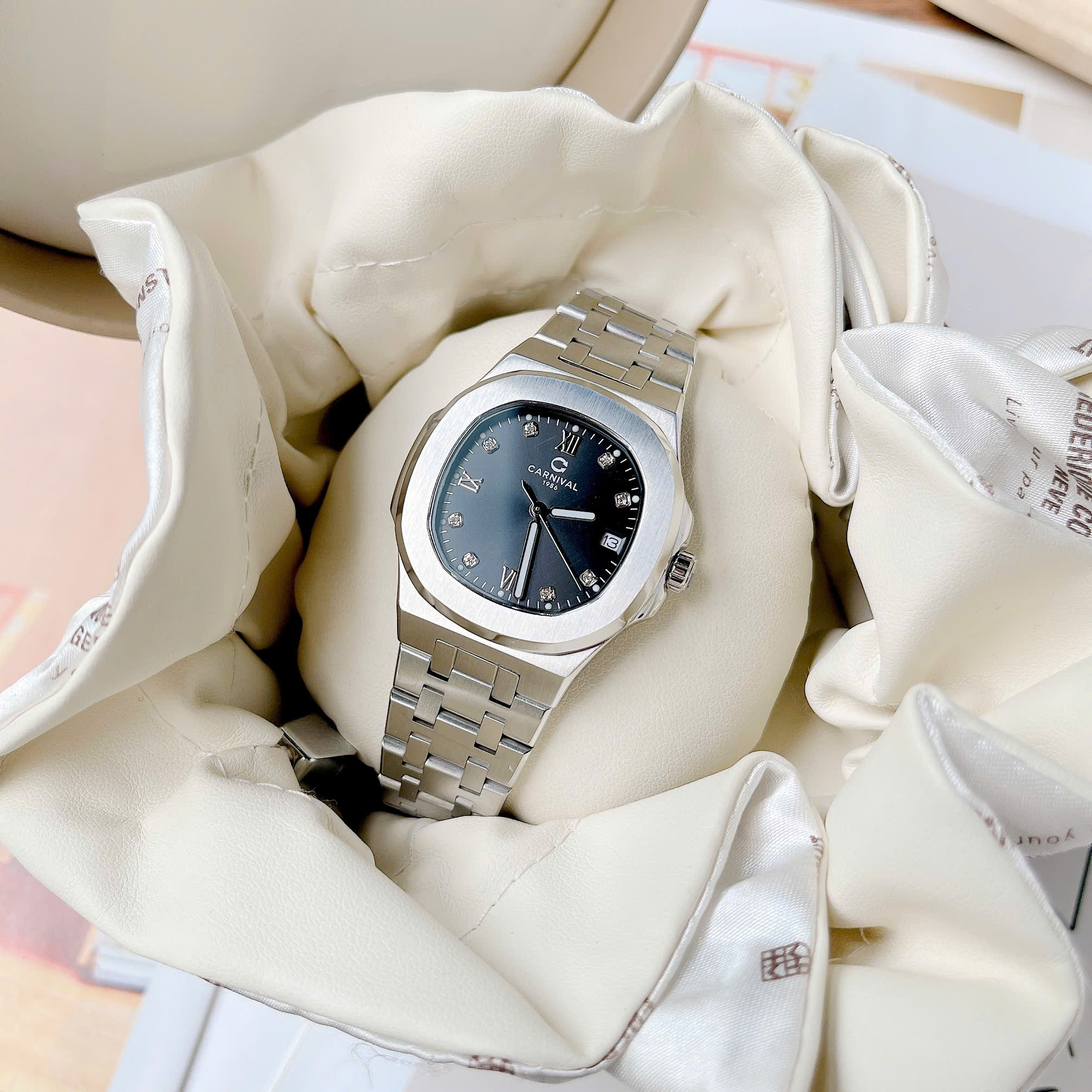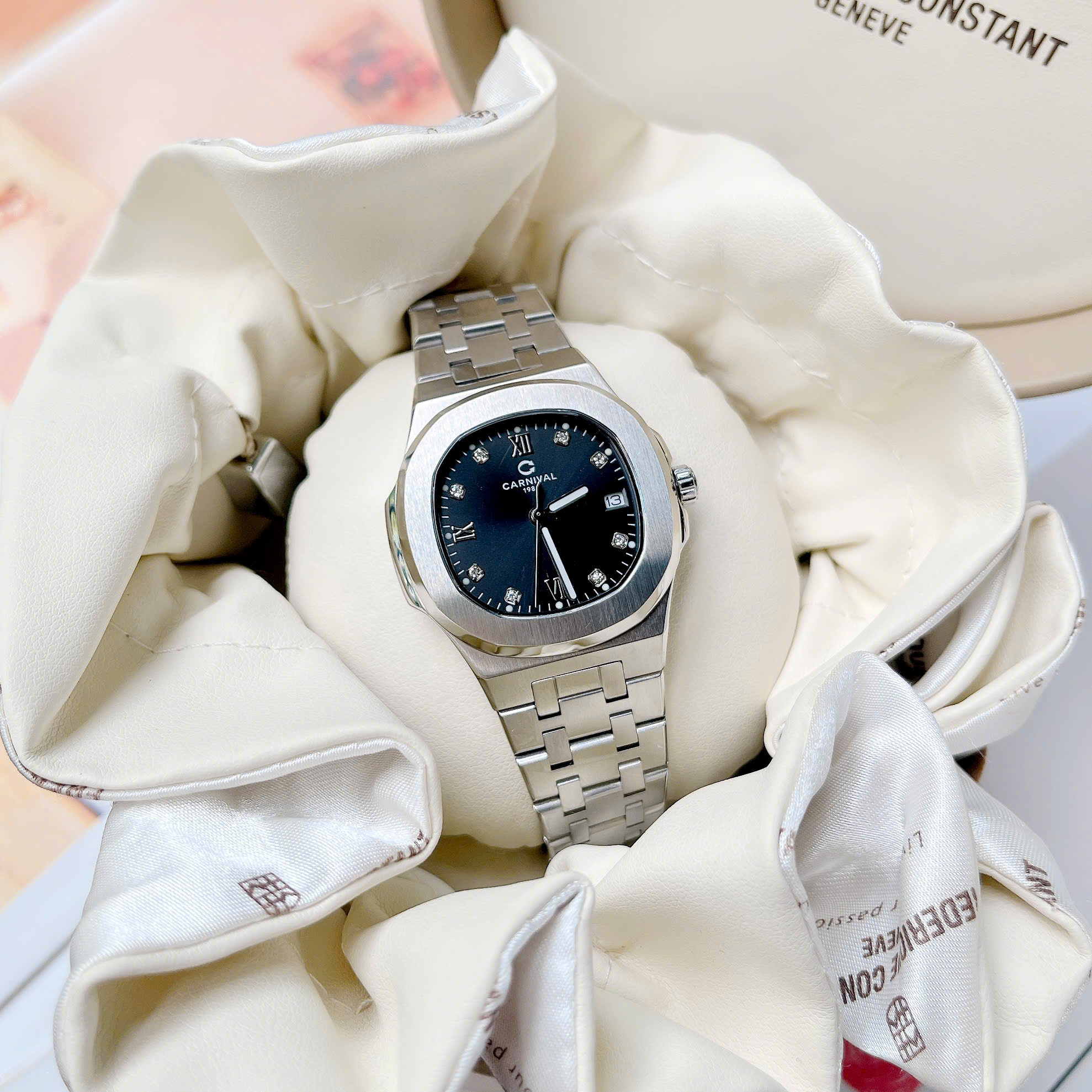 Dây đeo: Carnival  thường đi kèm với dây đeo bằng thép không gỉ hoặc dây da cao cấp. Thiết kế dây đeo có thể là mắt cáo (link) hoặc dạng dây đeo đơn (strap), tạo sự linh hoạt và tương thích với nhiều phong cách khác nhau.