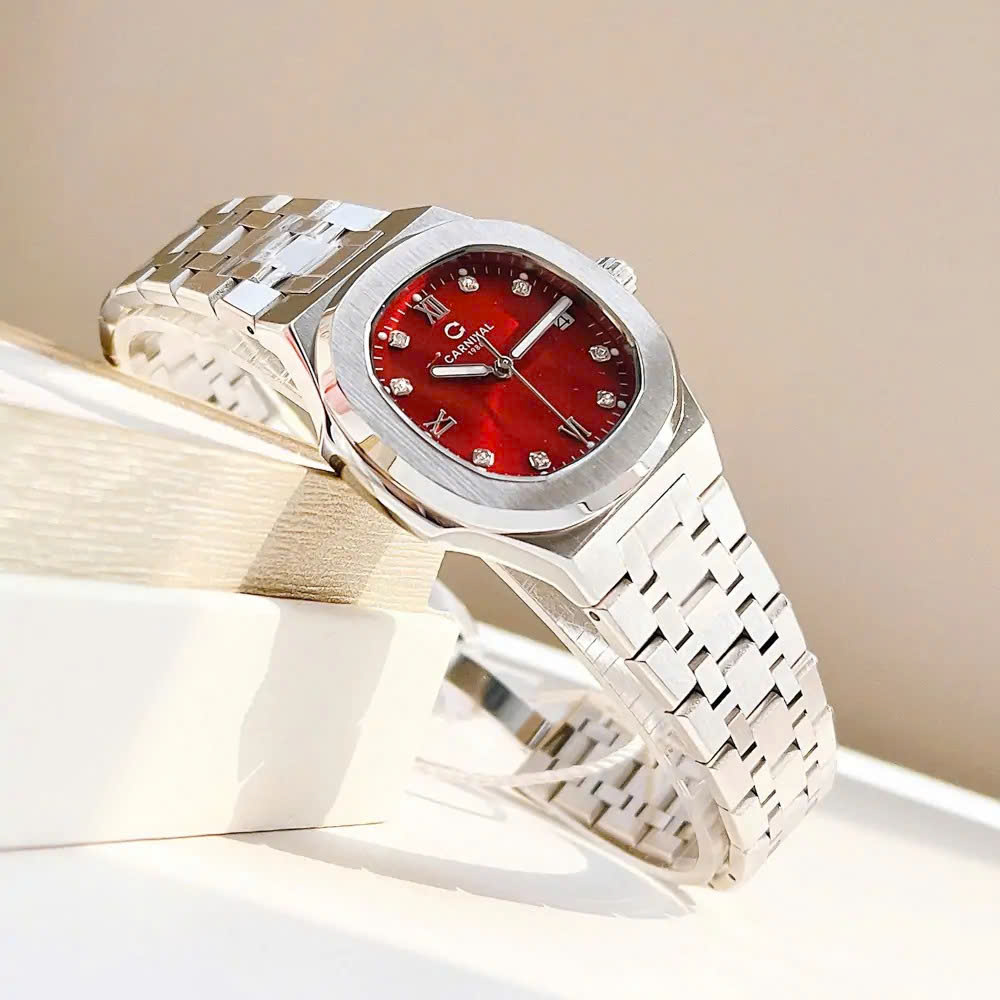 Dây đeo: Carnival thường đi kèm với dây đeo bằng thép không gỉ hoặc dây da cao cấp. Thiết kế dây đeo có thể là mắt cáo (link) hoặc dạng dây đeo đơn (strap), tạo sự linh hoạt và tương thích với nhiều phong cách khác nhau.