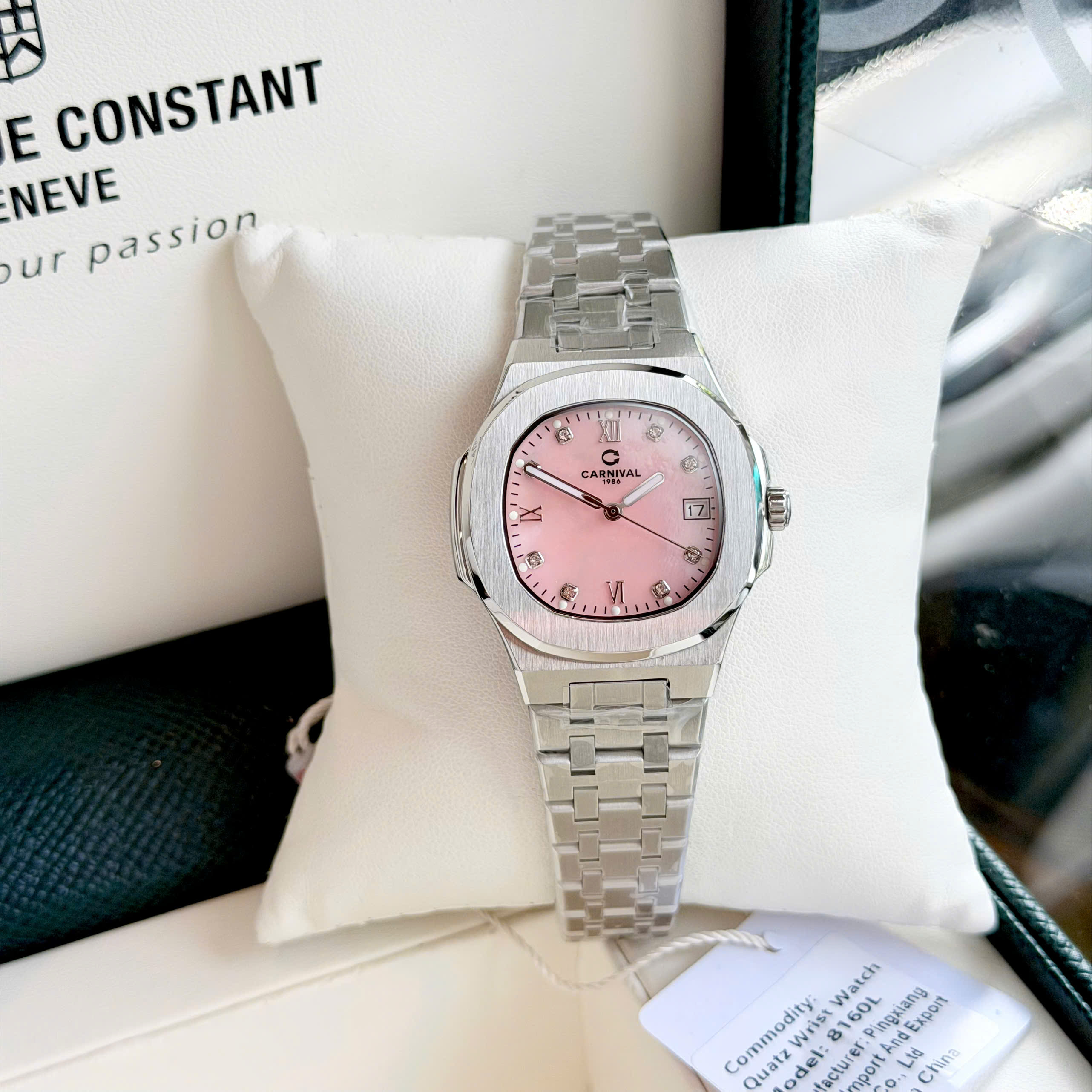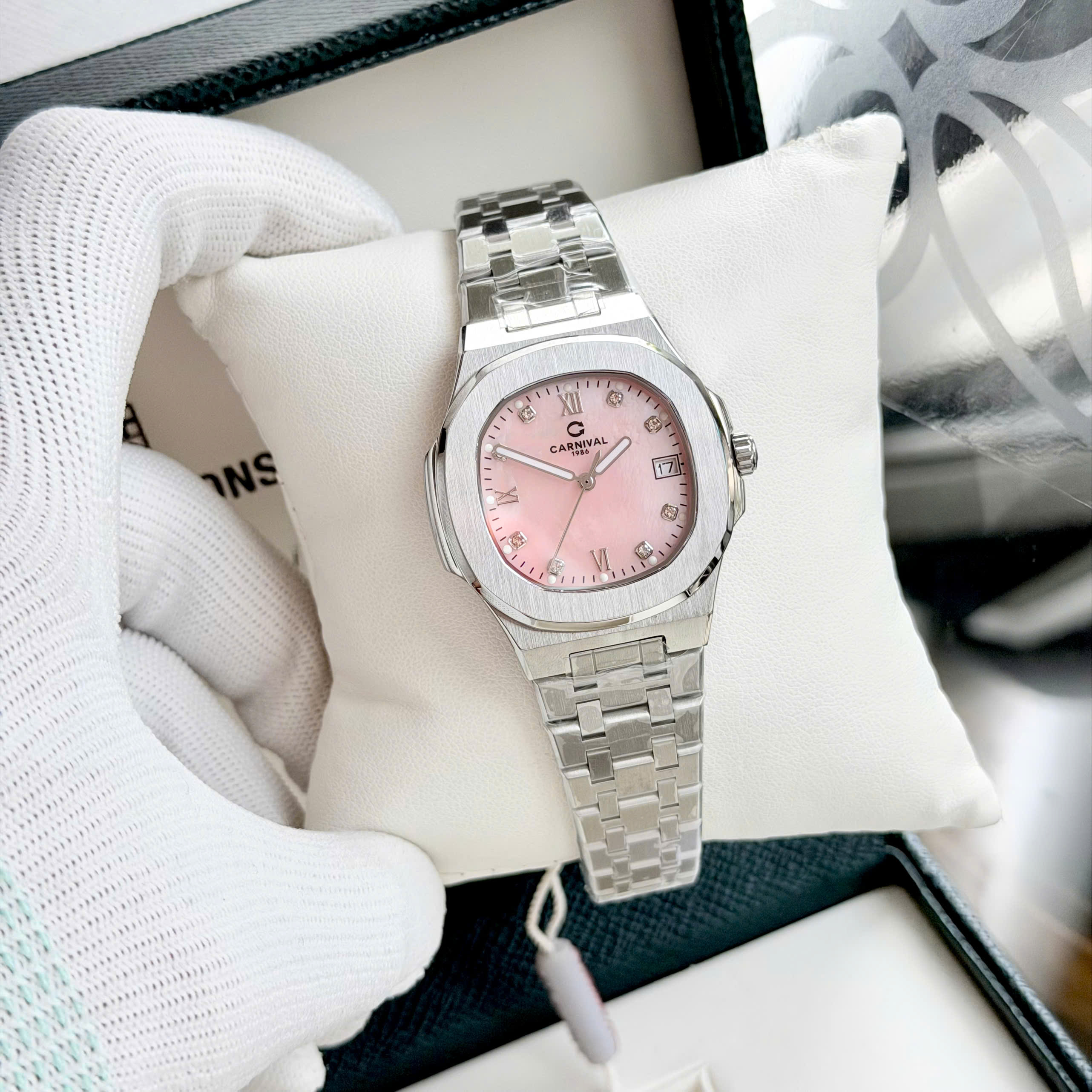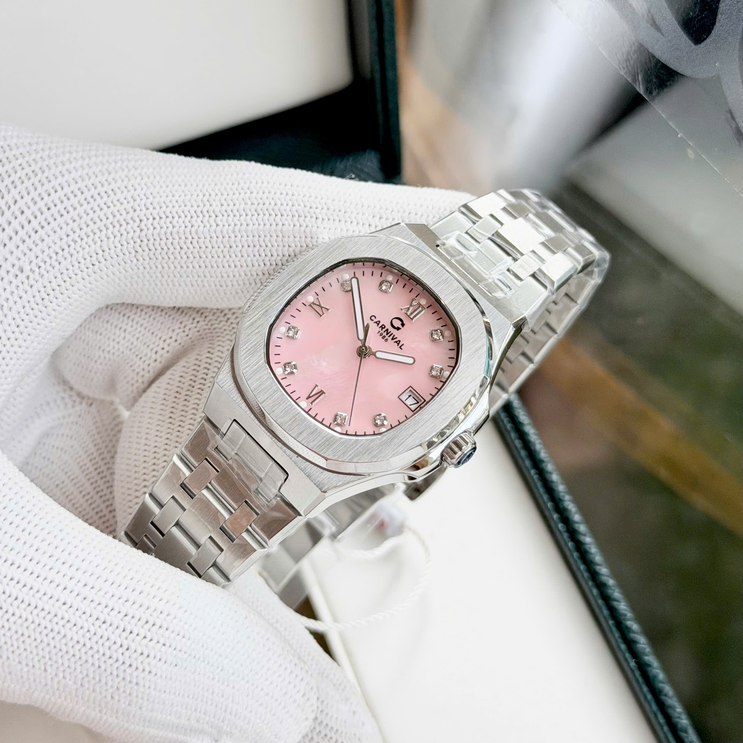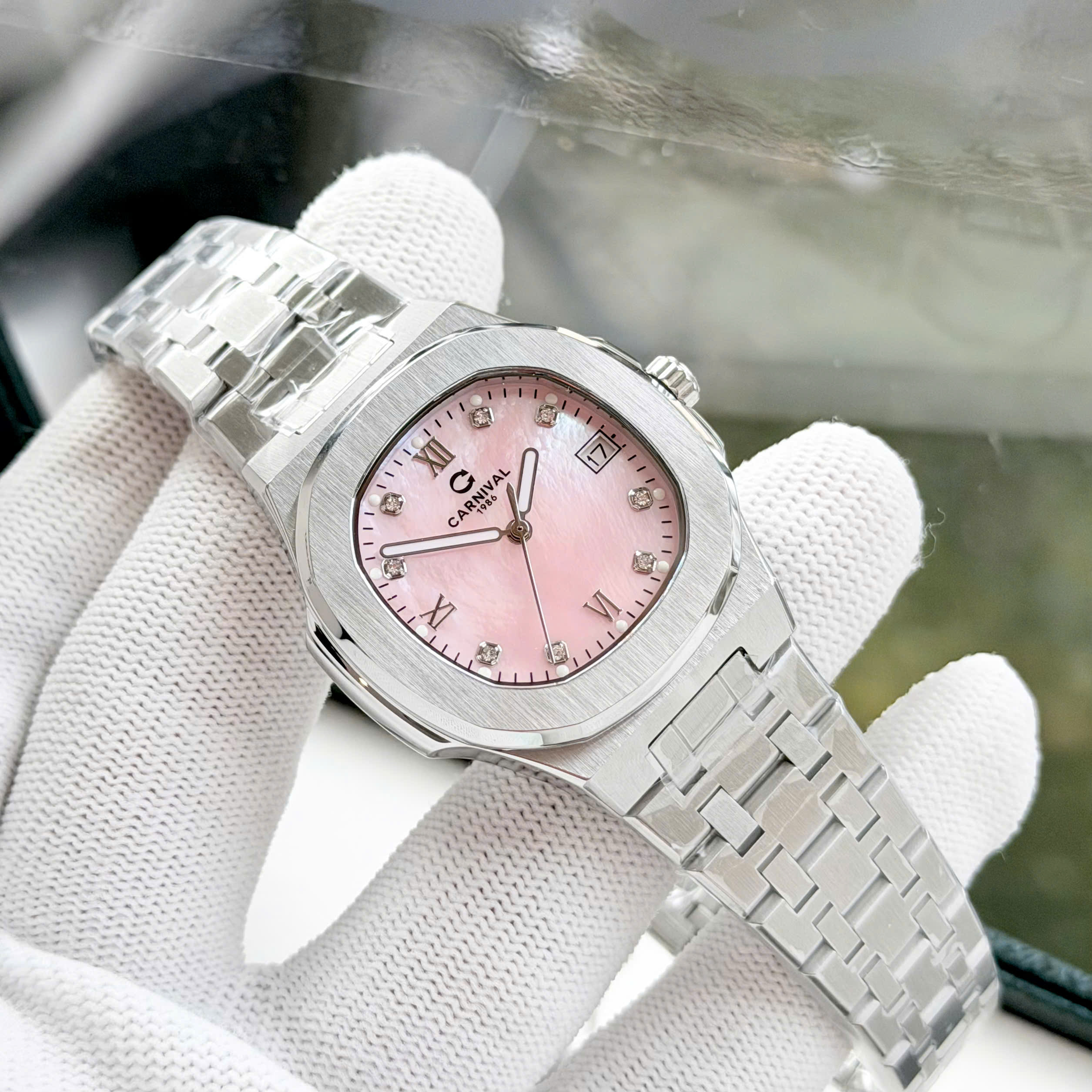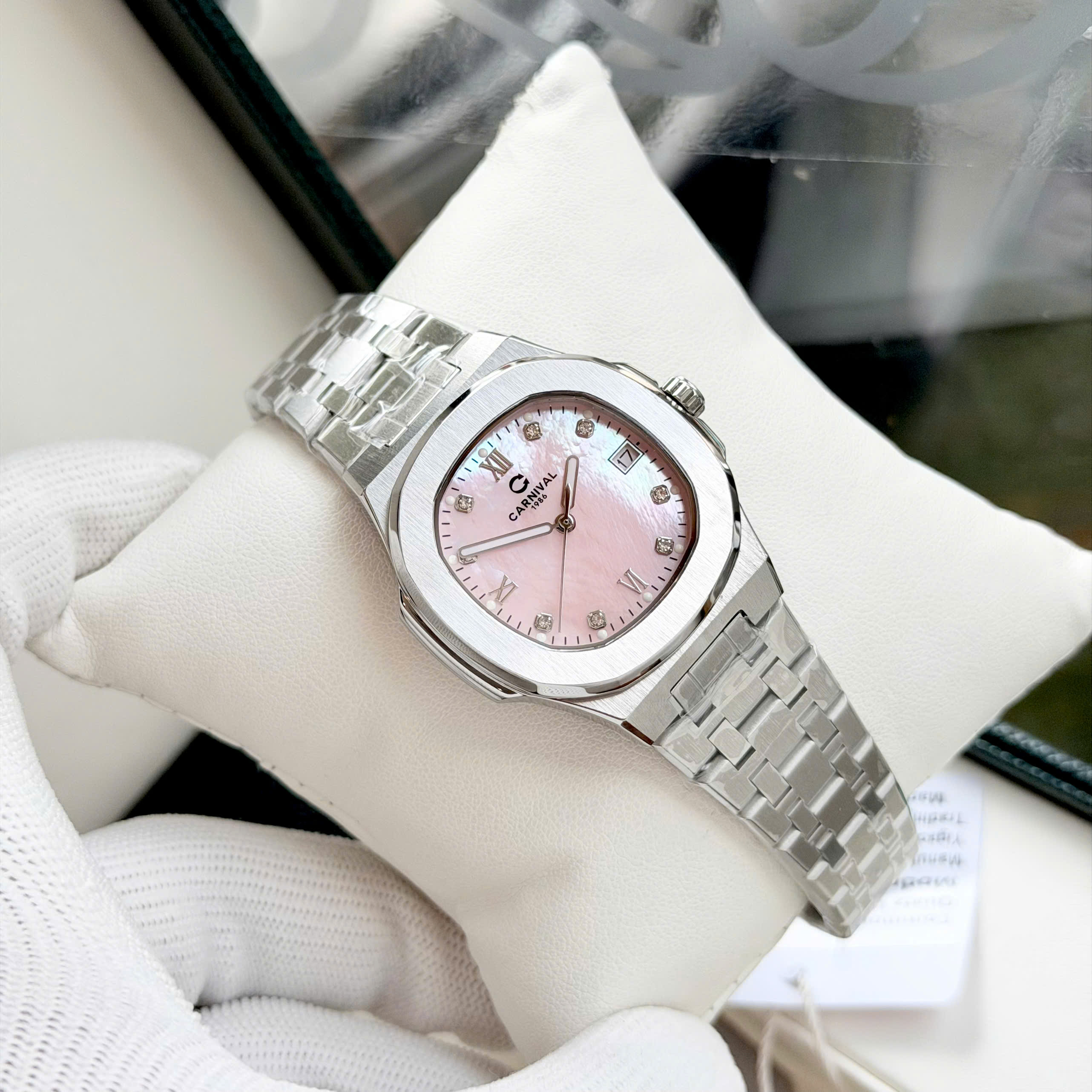 ĐỒNG HỒ Nữ Carnival 8160L-VT-HK Mặt Xà Cừ Hồng-Dây Thép-Pin-Kính Sapphire