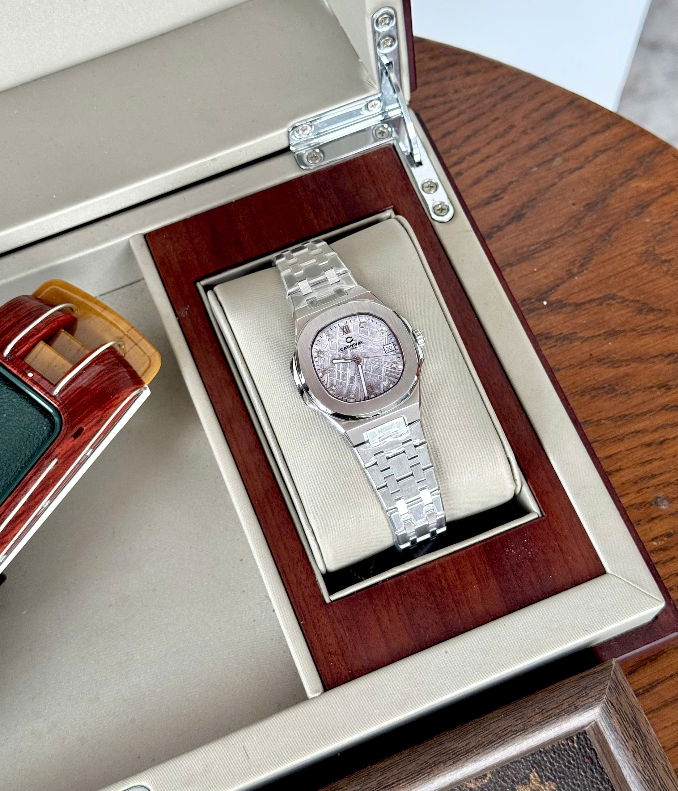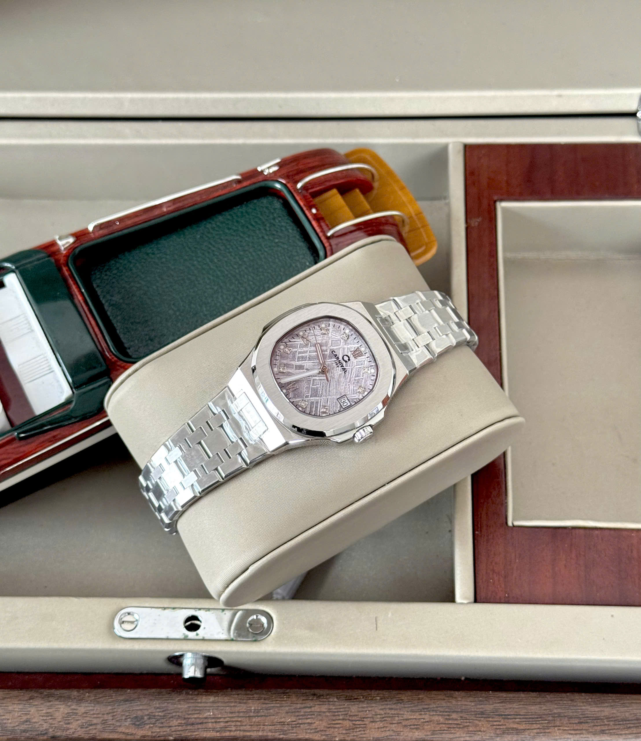 Viền và núm điều chỉnh: Viền của đồng hồ có thiết kế trơn hoặc với các chi tiết nổi bật, tùy thuộc vào phiên bản cụ thể. Núm điều chỉnh có thể được thiết kế với các đường rãnh hoặc đặc trưng của dòng Nautilus, tạo nên sự thuận tiện khi điều chỉnh thời gian.