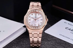 Viền và núm điều chỉnh: Viền của đồng hồ có thiết kế trơn hoặc với các chi tiết nổi bật, tùy thuộc vào phiên bản cụ thể. Núm điều chỉnh có thể được thiết kế với các đường rãnh hoặc đặc trưng của dòng Nautilus, tạo nên sự thuận tiện khi điều chỉnh thời gian.