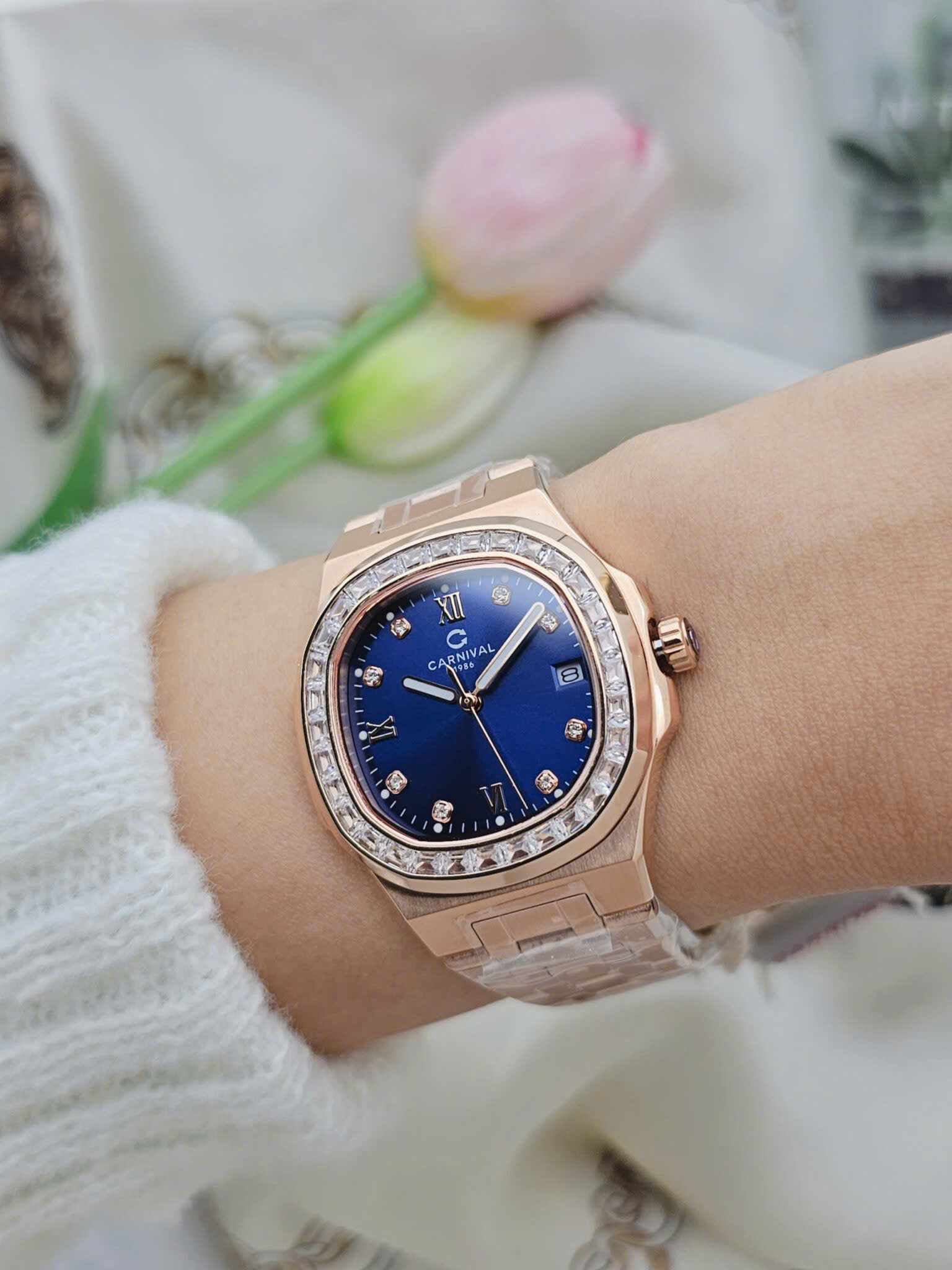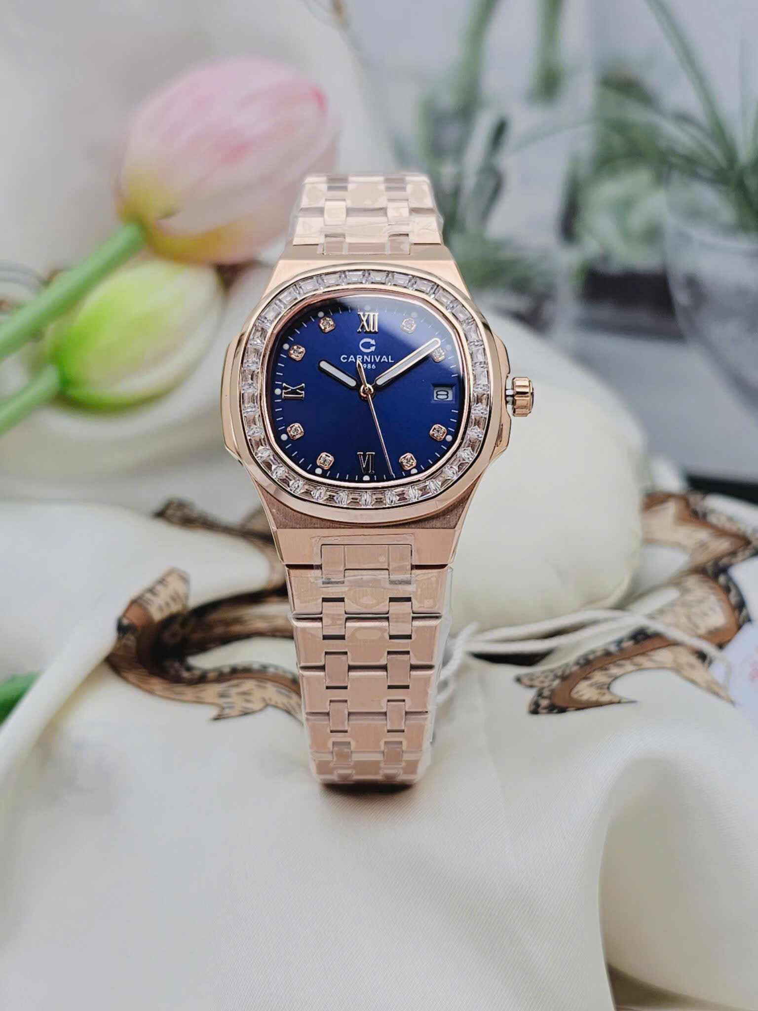 Dây đeo: Carnival  thường đi kèm với dây đeo bằng thép không gỉ hoặc dây da cao cấp. Thiết kế dây đeo có thể là mắt cáo (link) hoặc dạng dây đeo đơn (strap), tạo sự linh hoạt và tương thích với nhiều phong cách khác nhau.